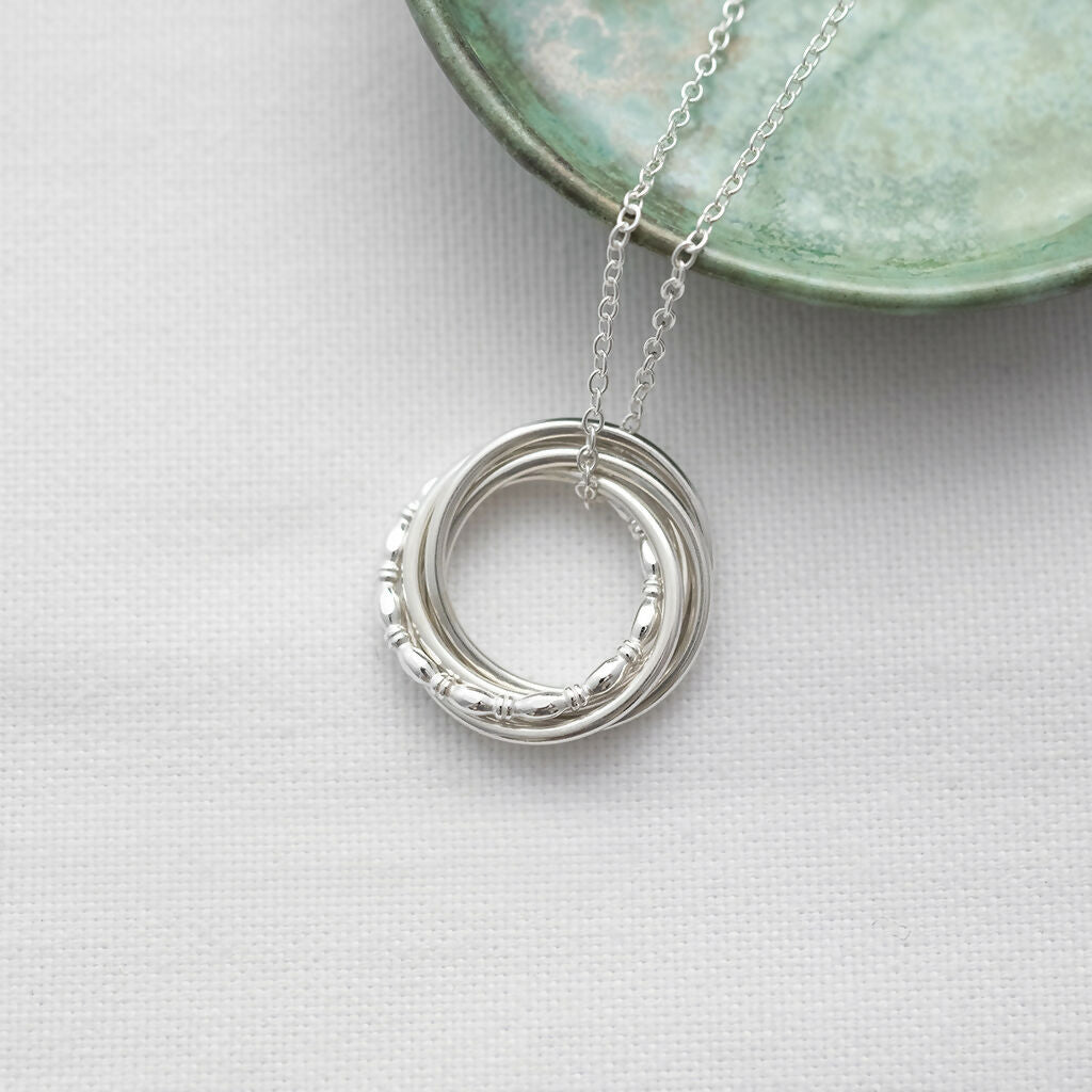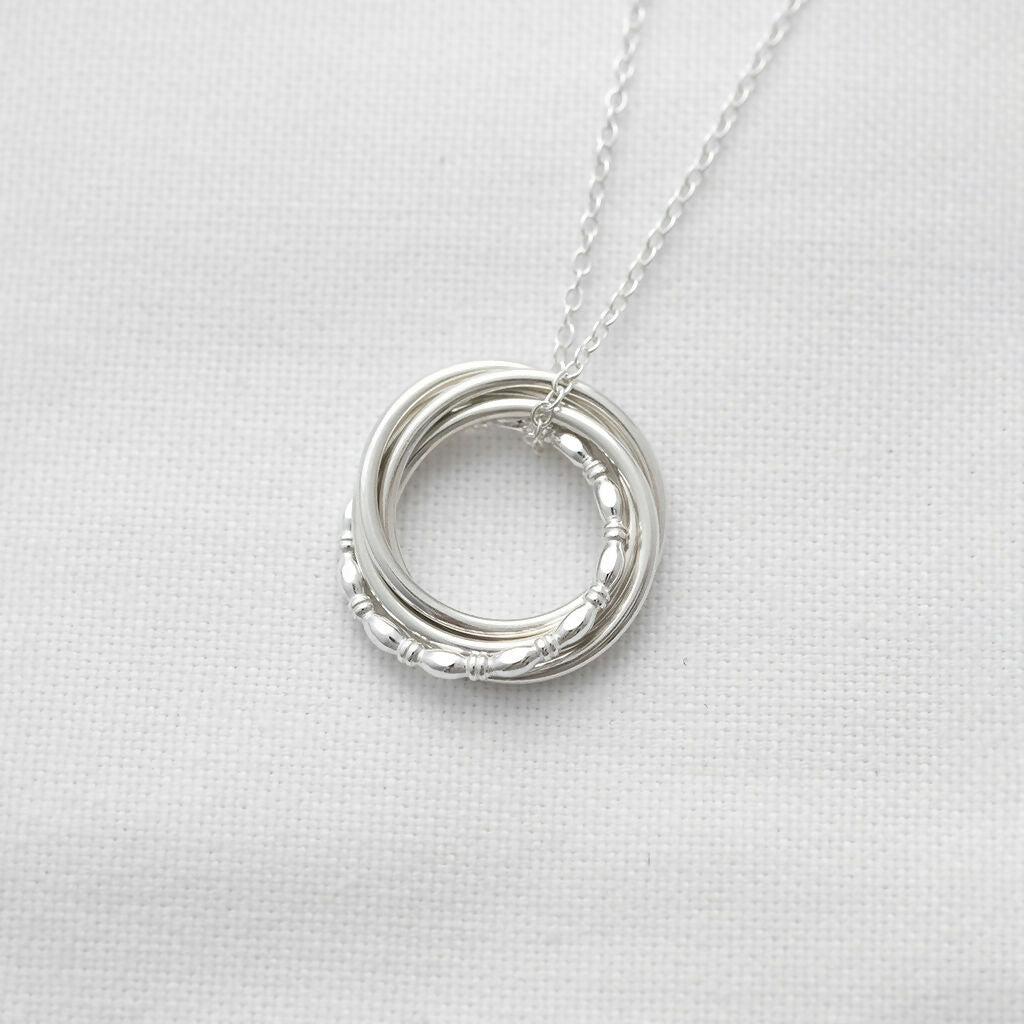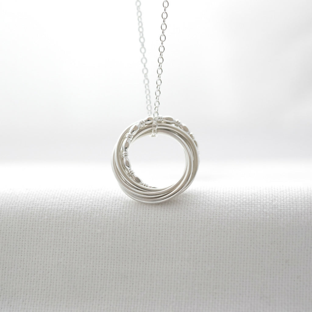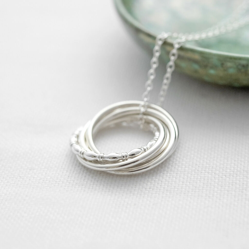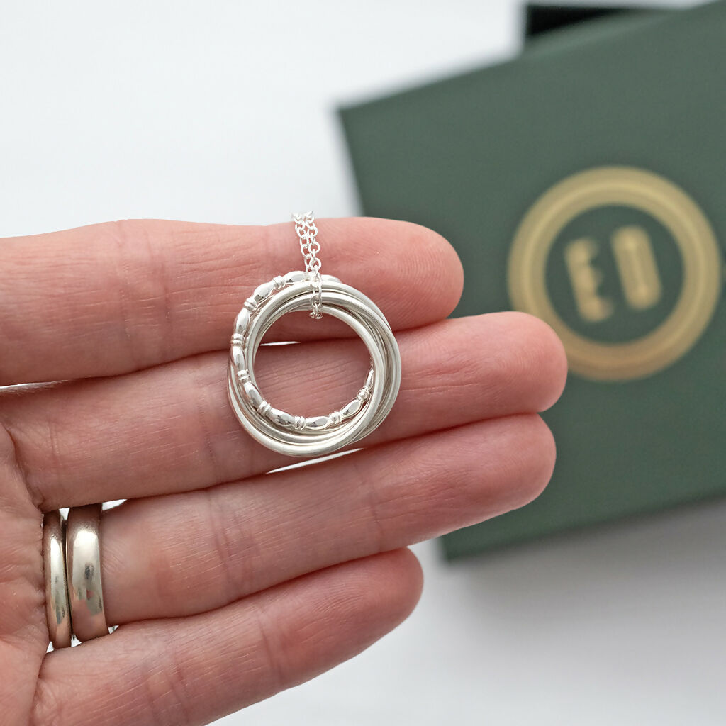 They’re also a popular choice as a family necklace and a celebration of life long friendships with each ring representing each person.