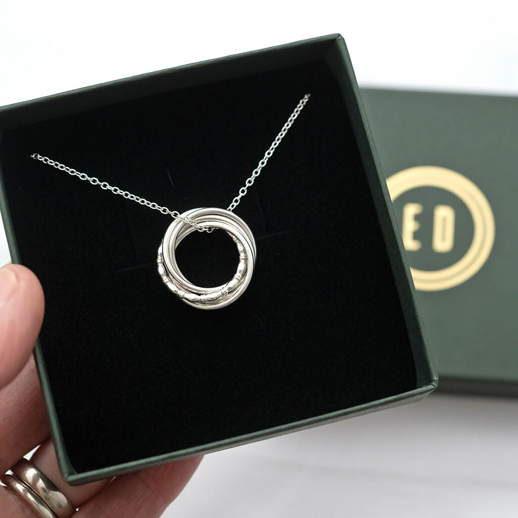 The ring necklaces often symbolise 5 decades, 5 sisters or 5 best friends making them a perfect keepsake gift.