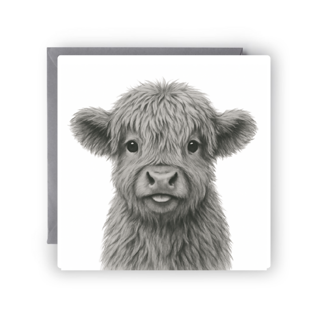 Prepare for a major dose of adorable! Our Baby Highland Cow Greeting Card features the sweetest, fluffiest illustration of a Highland calf—the world’s most charming Hairy Coo. This card is perfect for celebrating a new arrival, baby showers, or simply sending a message so cute it can't be resisted.