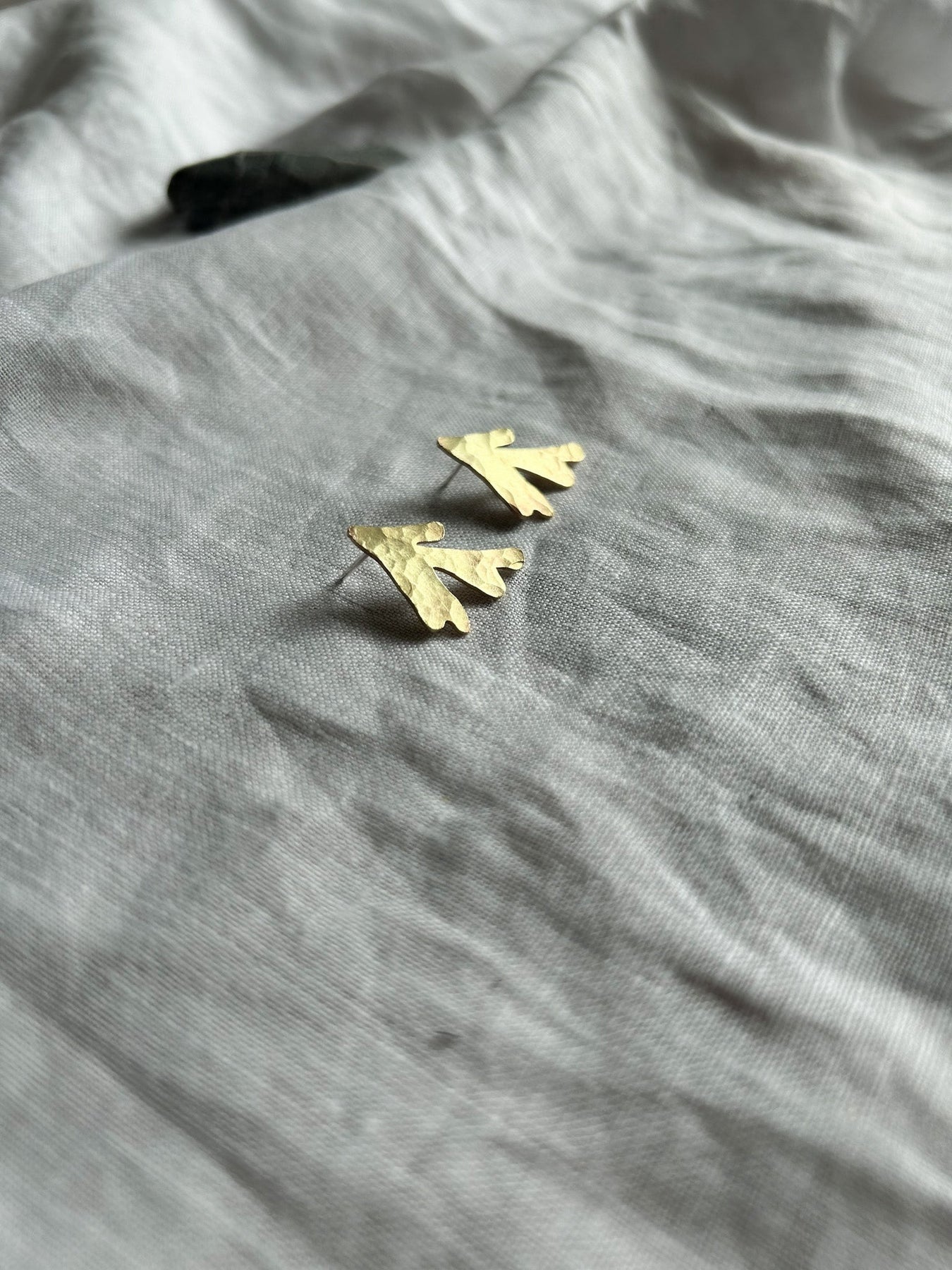 Seaweed inspired hammered brass studs with sterling silver pins and butterfly clasps. Cut and hammered in Cornwall, these playful kelp and pebble inspired shapes can be worn to...