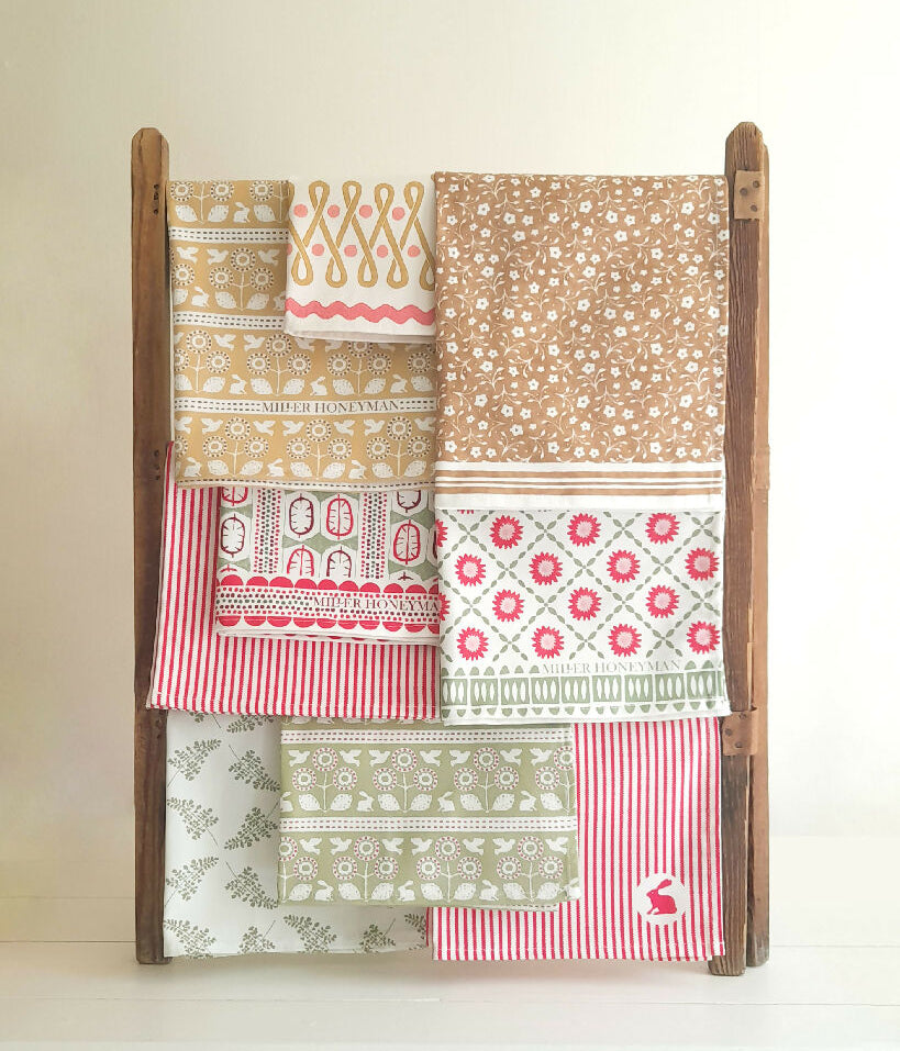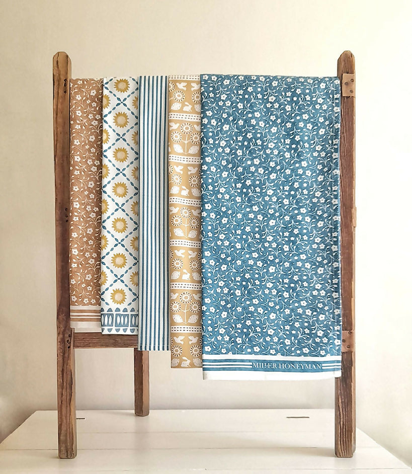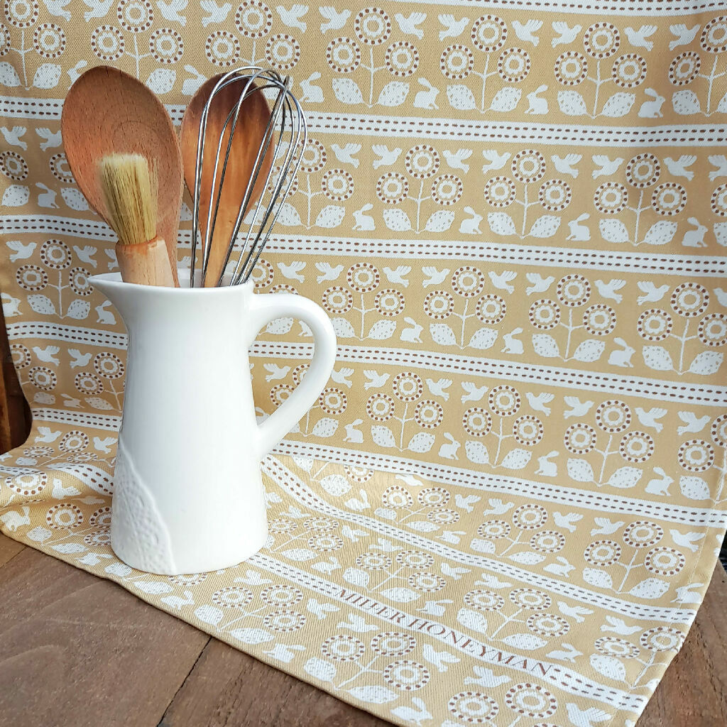 This organic cotton tea towel features my Bunny & Bird design in Straw, perfect for a country cottage look. The tea towel has a handy corner hanging loop.