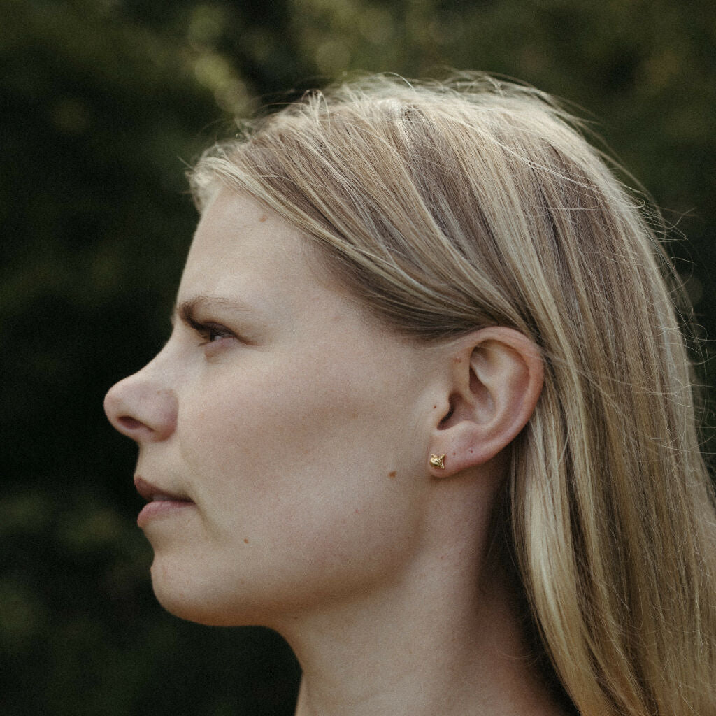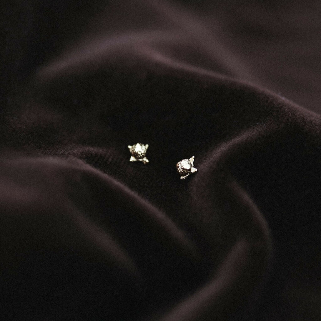 Cast from clove seed pods, these studs naturally echo the appearance of set stones, with rich organic texture and form. Recycled sterling silver with gold vermeil.