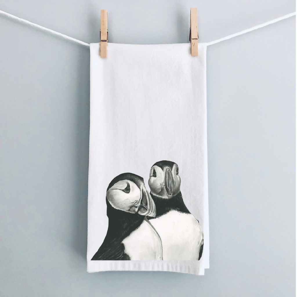 Coastal Charm: Puffin Countryside Tea Towel (100% Cotton)