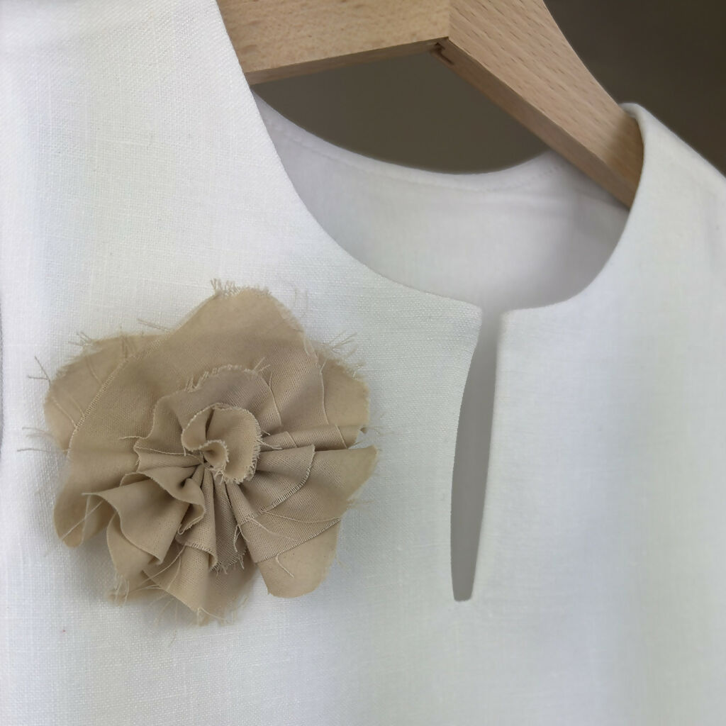 Elevate your little one’s wardrobe with this organic girls linen blouse with beige flower detail, crafted from premium Belgian linen and sustainable materials. Each blouse featu...