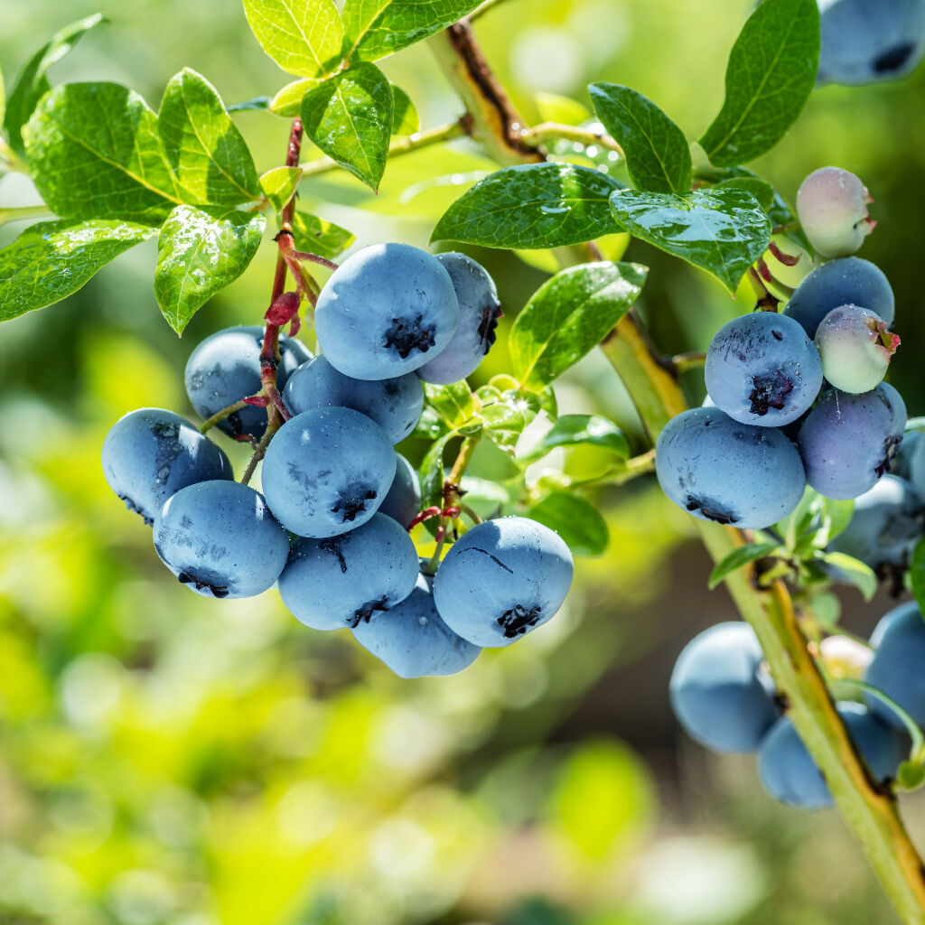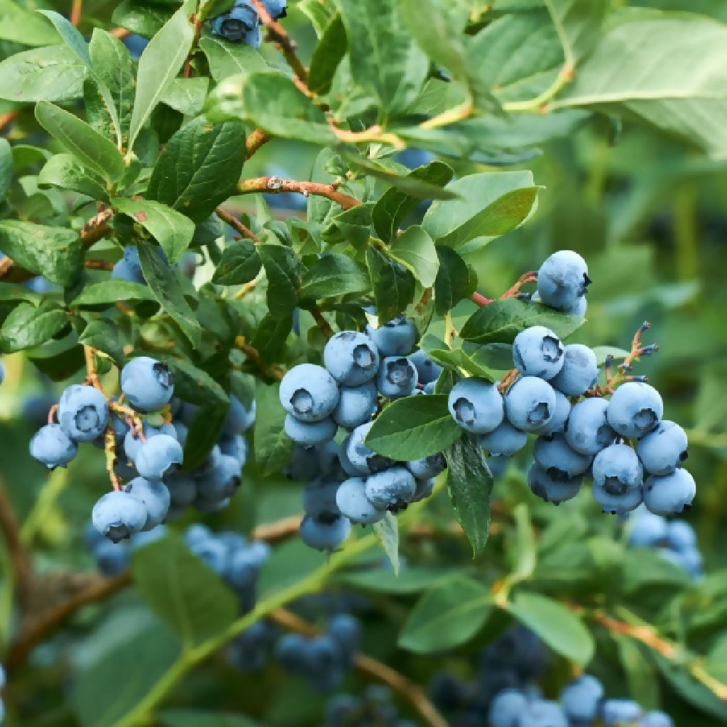 Blueberry is a rewarding, ornamental fruit bush prized for its plump, sweet berries and vibrant seasonal foliage — perfect for patio pots, borders, or kitchen gardens, offering reliable crops, attractive spring flowers, and brilliant autumn colour alongside delicious harvests through the summer months.