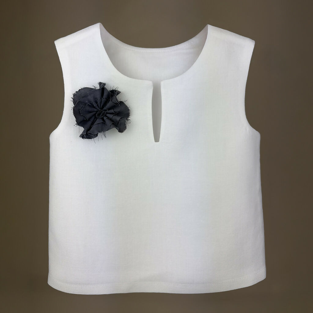 Girls Linen Blouse with Black Flower Detail