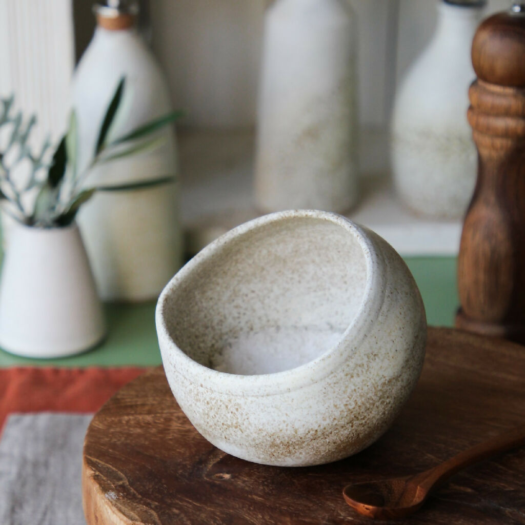 This handcrafted Salt cellar has a wide opening making it easy to pinch a dash of salt when you’re cooking, while the tactile, organic form celebrates the natural charm of rustic ceramics.