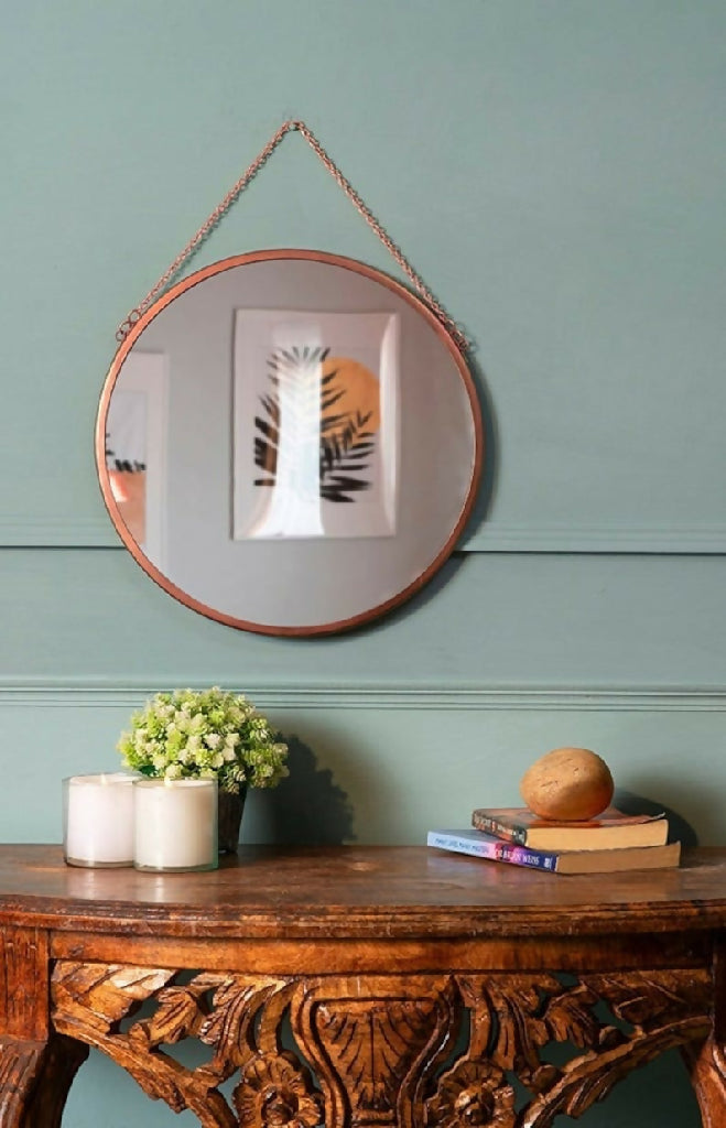 Elegant Round Hanging Mirror with Metal Frame and Chain