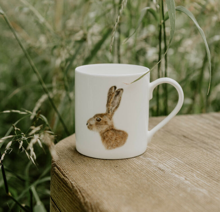 Featuring Rachel’s delicate pencil drawing of a hare, this small sized bone china mug fits perfectly in your hand, and means you can keep topping it up from a nearby teapot.