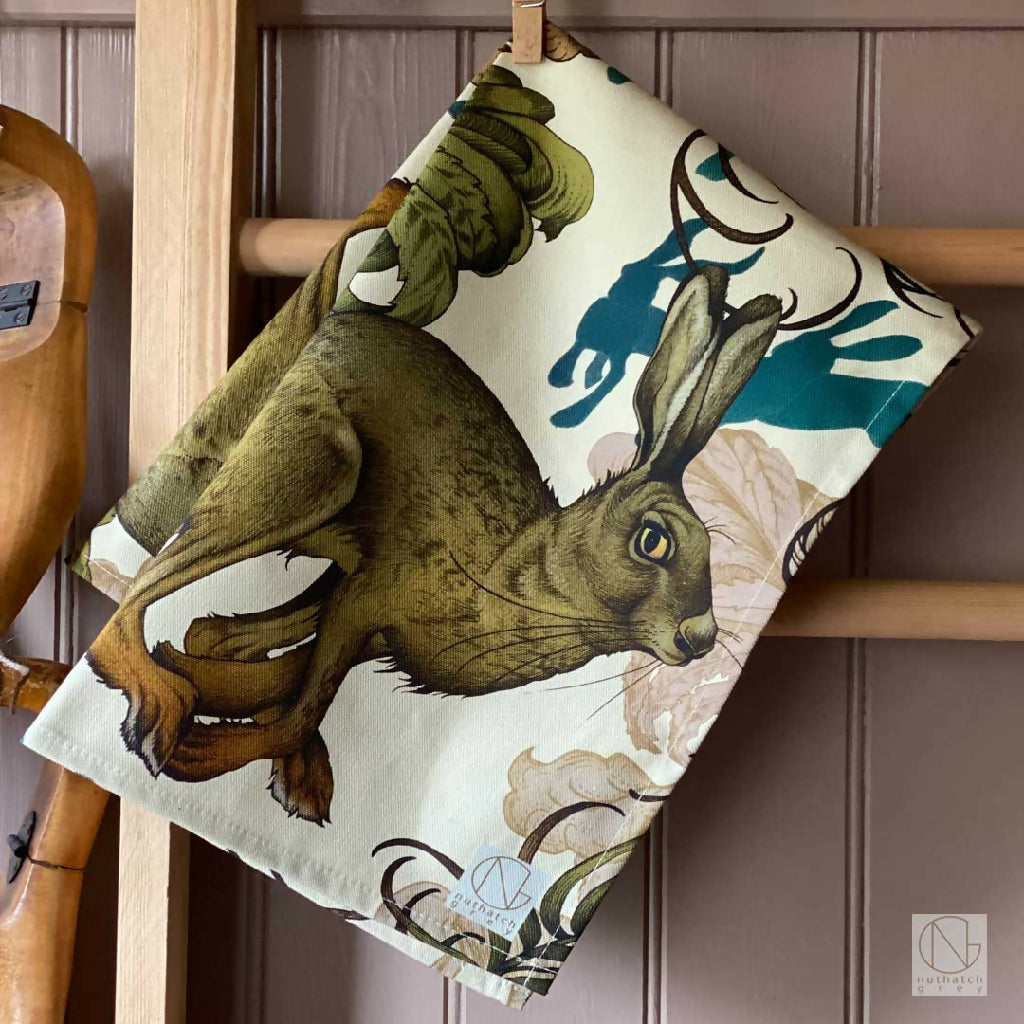 Bring the beauty of the countryside into your kitchen with our Summer Hare Drove tea towel - a delightful design featuring hares nestled among soft ferns and wild foliage in fre...