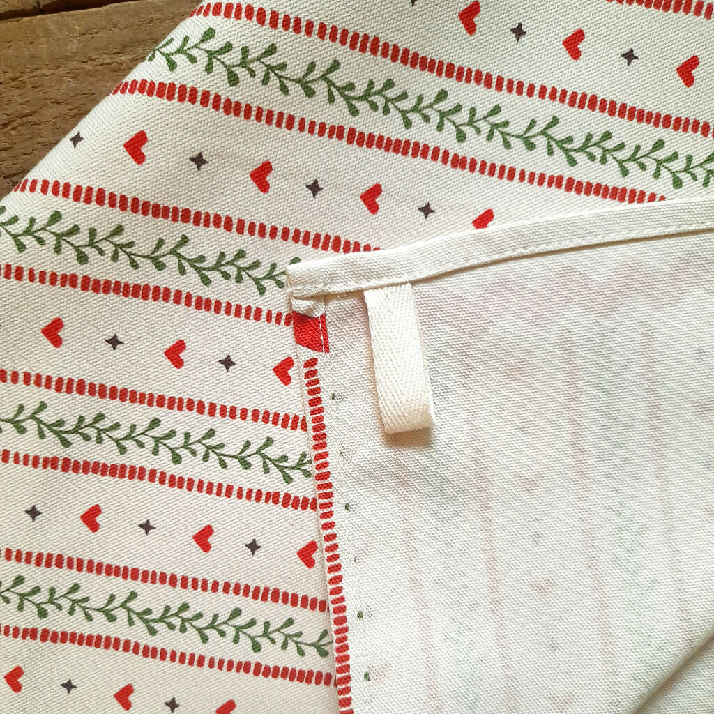 This organic cotton tea towel features my Heart Stripes design, perfect for a country cottage look. The tea towel has a handy corner hanging loop.