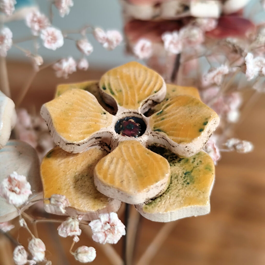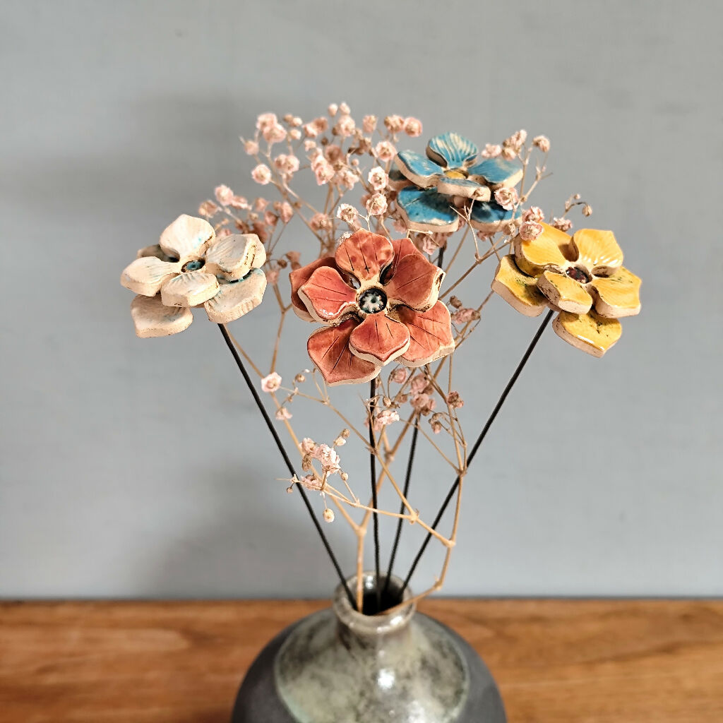 Handcrafted Hydrangea ceramic flowers on 25cm long stem in four colour options. The bouquet looks beautiful all year round. Mix the flower stems with dry or fresh flowers and make your own art display.