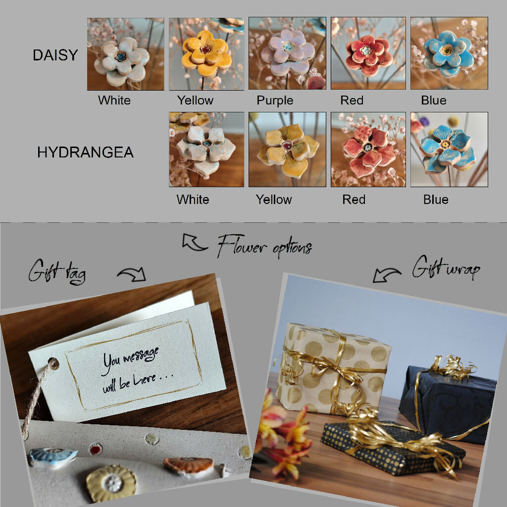 These pottery ornament treasures make a thoughtful gift for a housewarming or dinner party. Or why not post these flowers as a bouquet instead of fresh ones to celebrate your loved one's Birthday or Anniversary with these everlasting flowers!