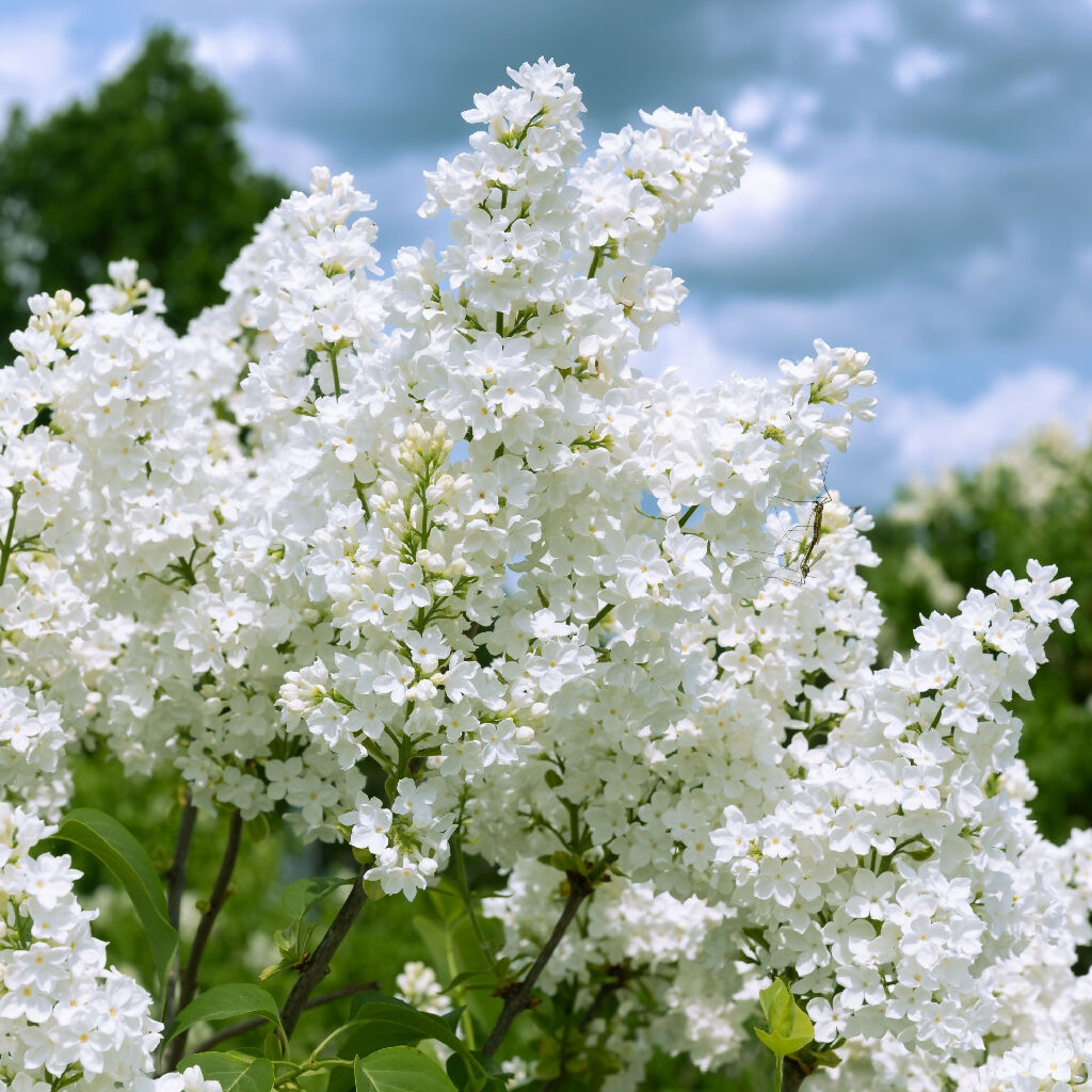 Syringa ‘Madame Lemoine’ is a refined, late-flowering lilac adored for its abundant, double white blossoms that release a beautifully sweet fragrance.