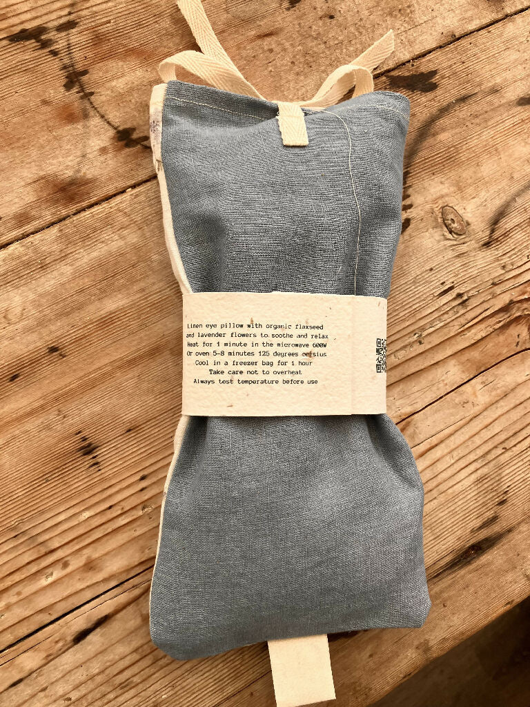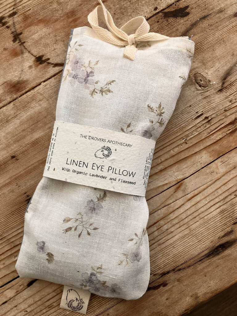 Floral Linen eye pillow with cotton liner filled with organic flaxseeds and lavender flowers, gently scented with organic lavender essential oil. Chill in the freezer or warm in the microwave for total relaxation. Not suitable for children under three. Always supervise children to avoid chilling or overheating. Approx. 22 x 11cm. outer cover machine washable