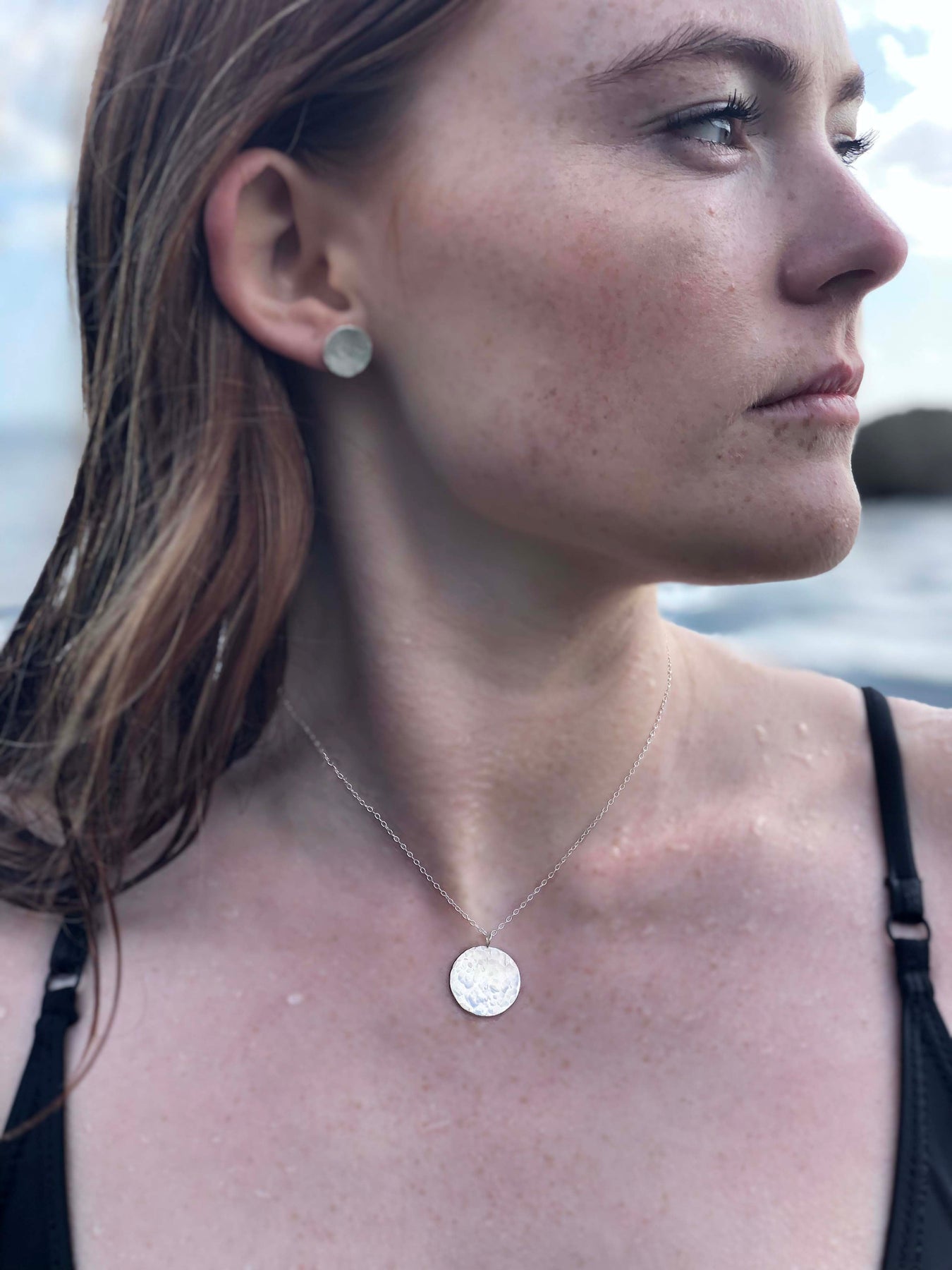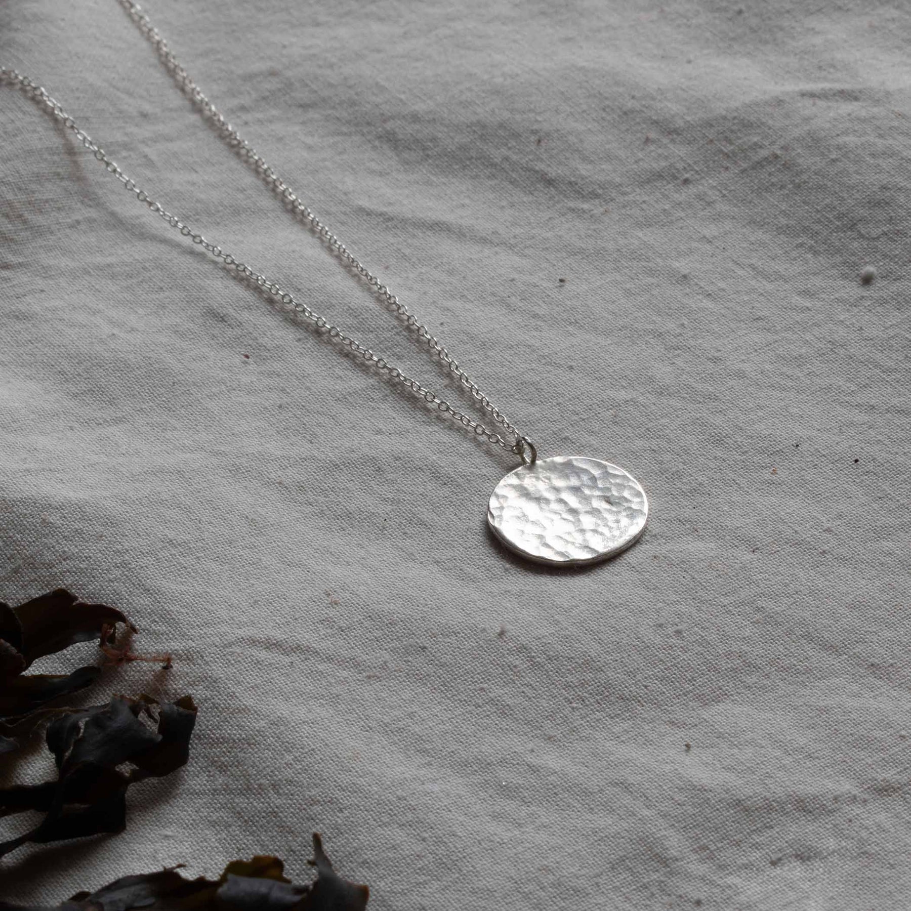 This hammered recycled silver pendant has been lovingly made in my Penryn studio.