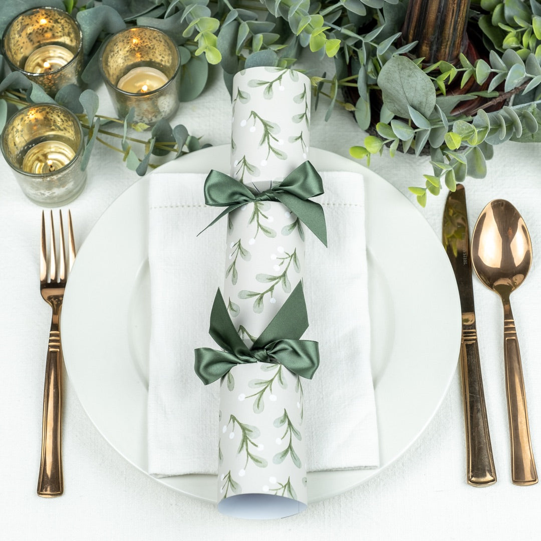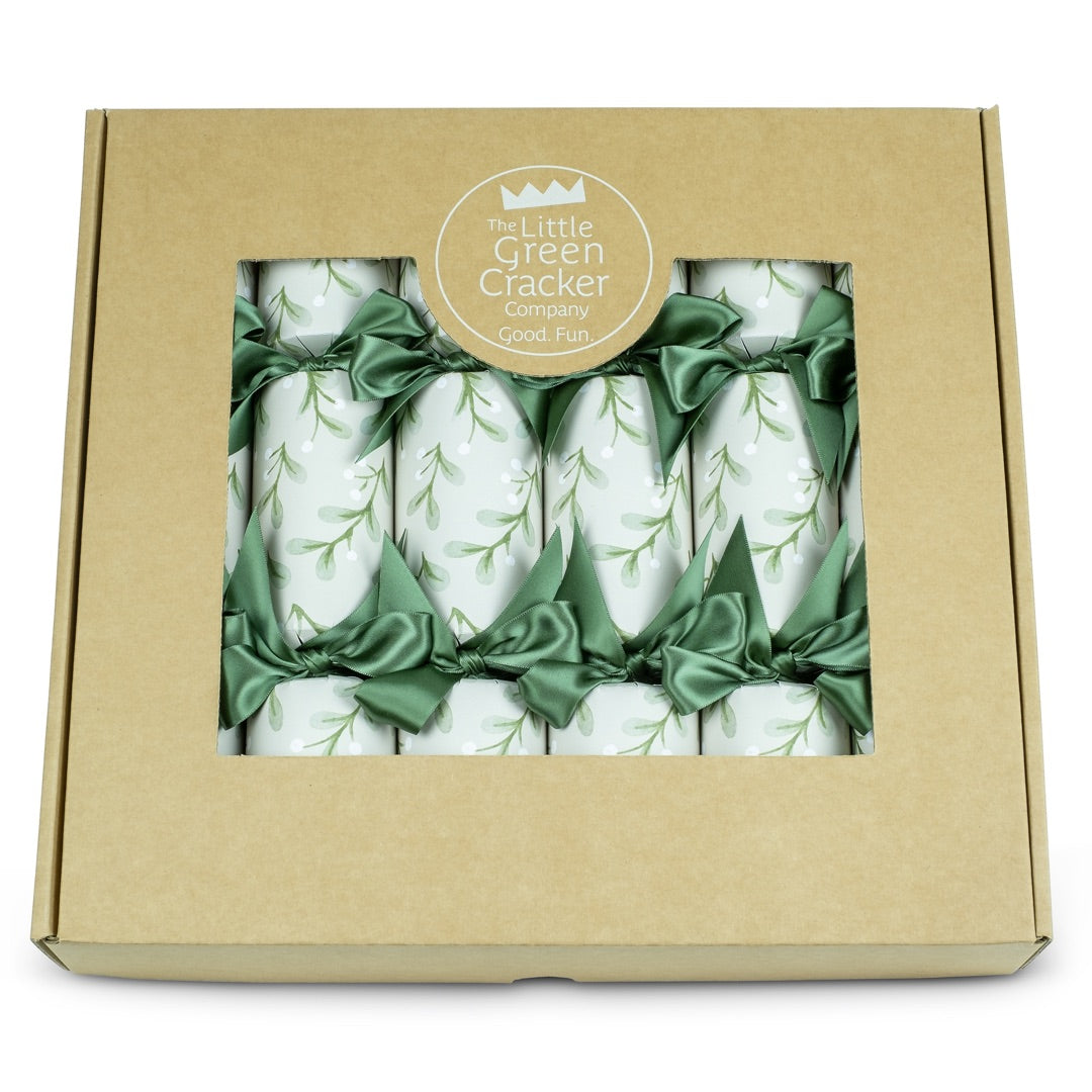 Six luxury Christmas crackers with a subtle, mistletoe design, matched with recycled polyester ribbon.Handmade, eco-friendly, and plastic free.Our mistletoe design was launched ...