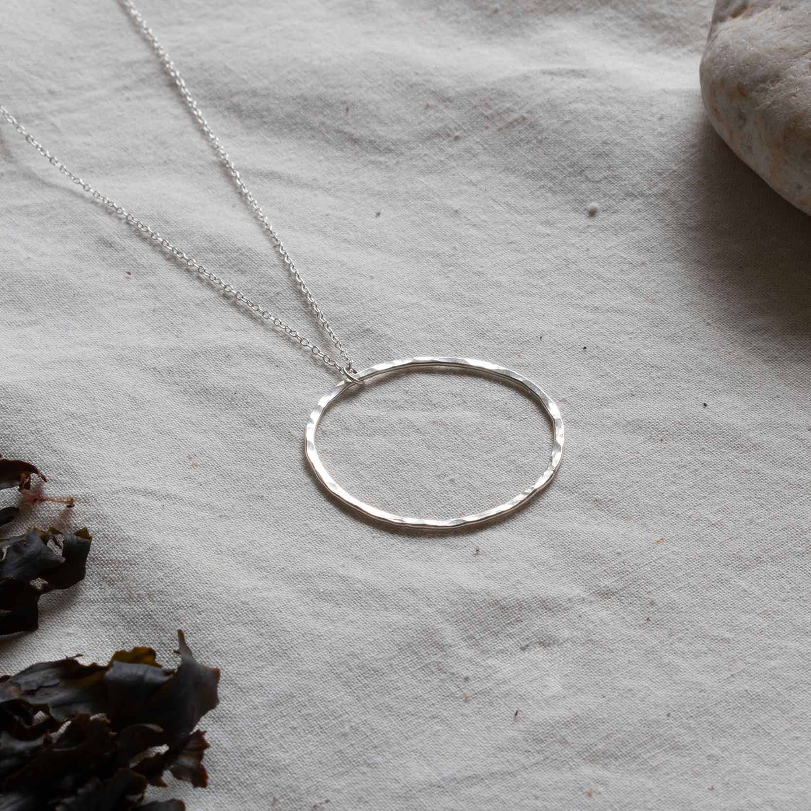 This hand battered Moon pendant is made with recycled silver and comes with a recycled silver 40cm chain.
