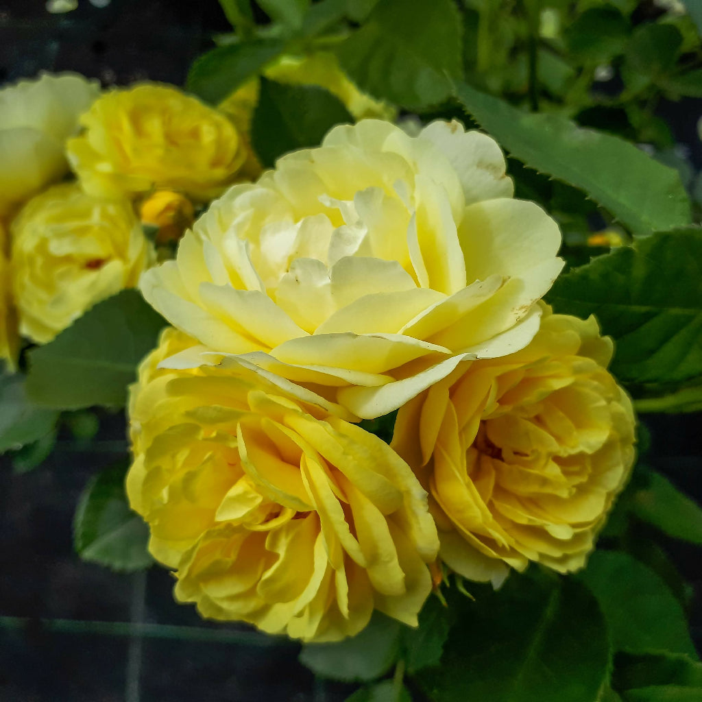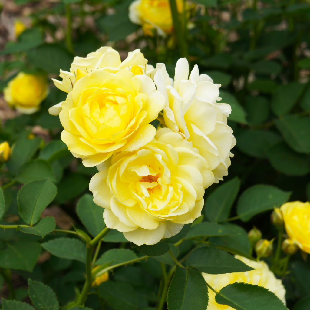 Rose ‘Mountbatten’ is a robust floribunda rose producing clusters of golden-yellow, lightly scented blooms - perfect for adding bold colour, fragrance, and structure to borders and patio displays.