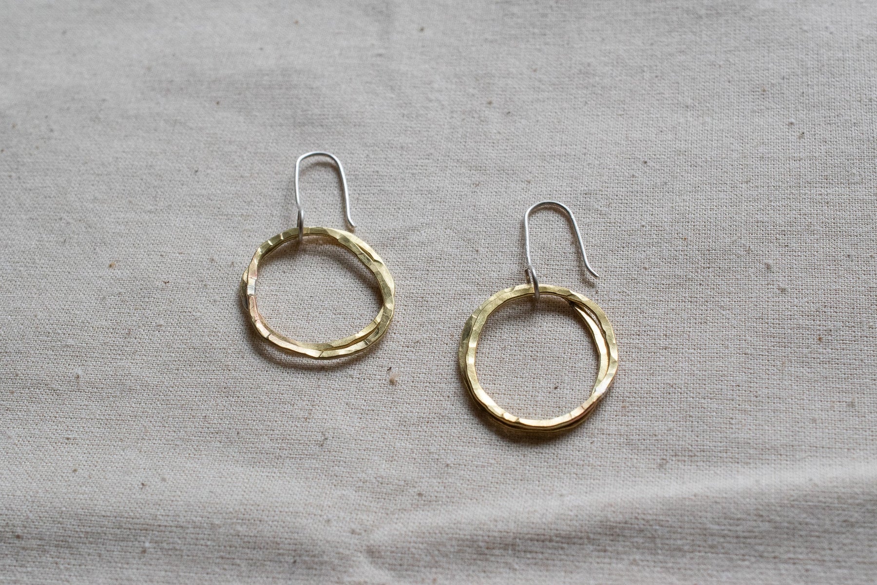 They are stacked in sets of two and hang from a hand made recycled silver ear wire.