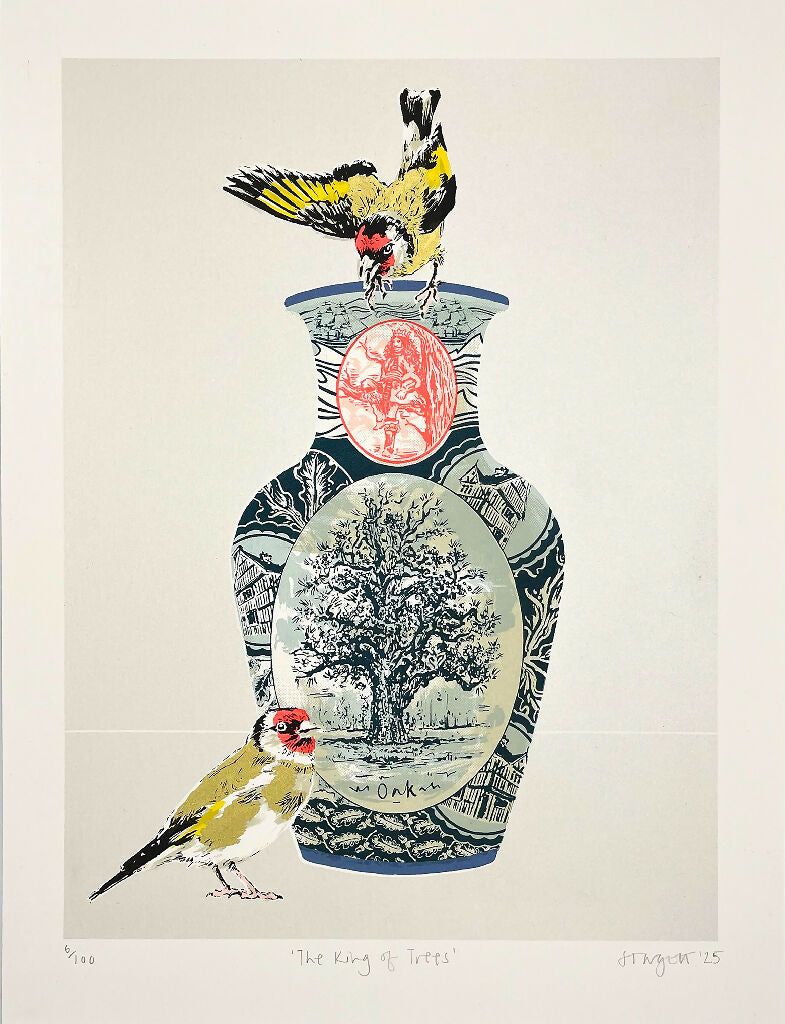 The King of Trees is a 10 colour Limited Edition screenprint on Fabriano paper. Celebrating the Oak Tree and some of the stories, uses and birds it supports. The birds are goldf...