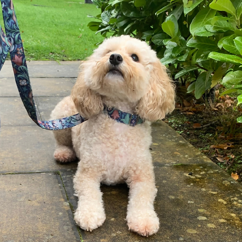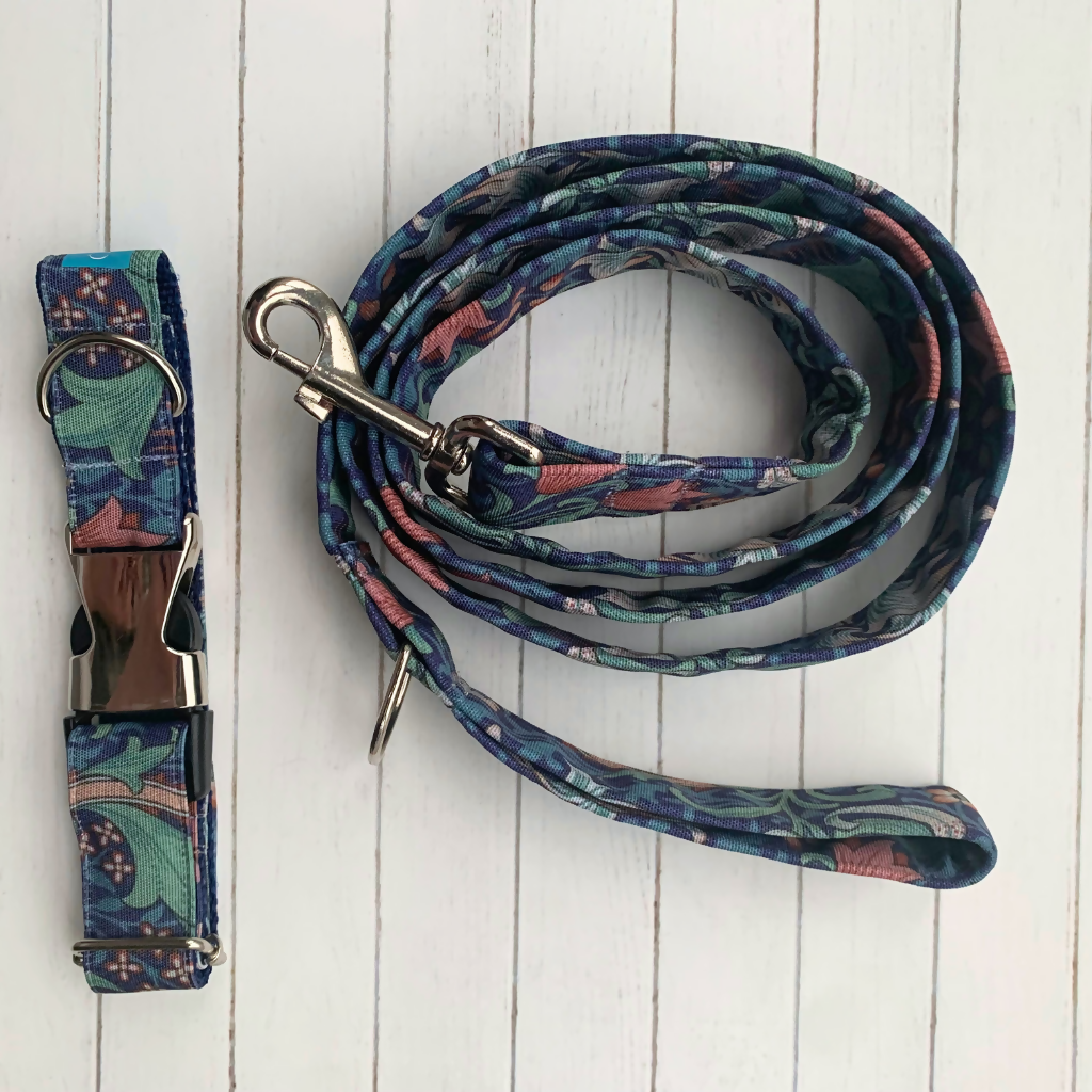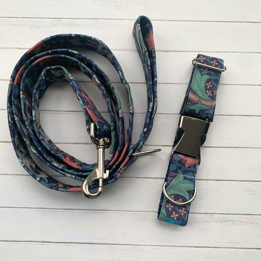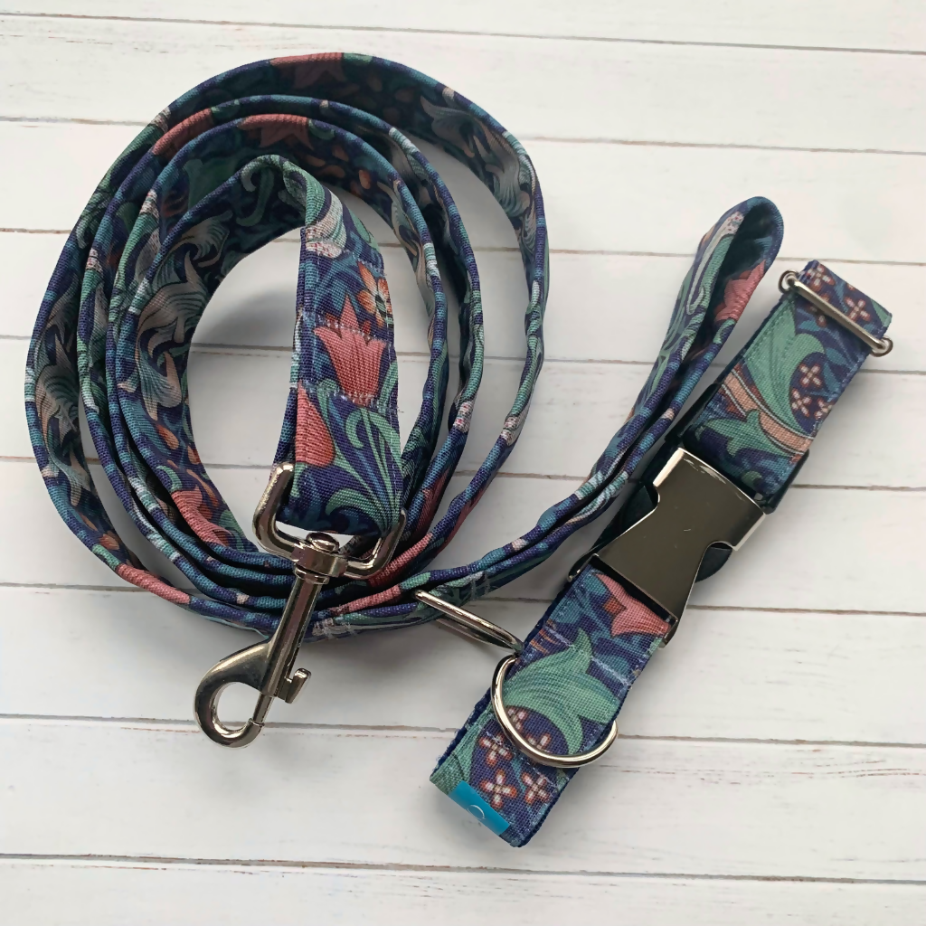 William Morris “Golden Lily” Canvas Collar and Lead Gift Set in Midnight
