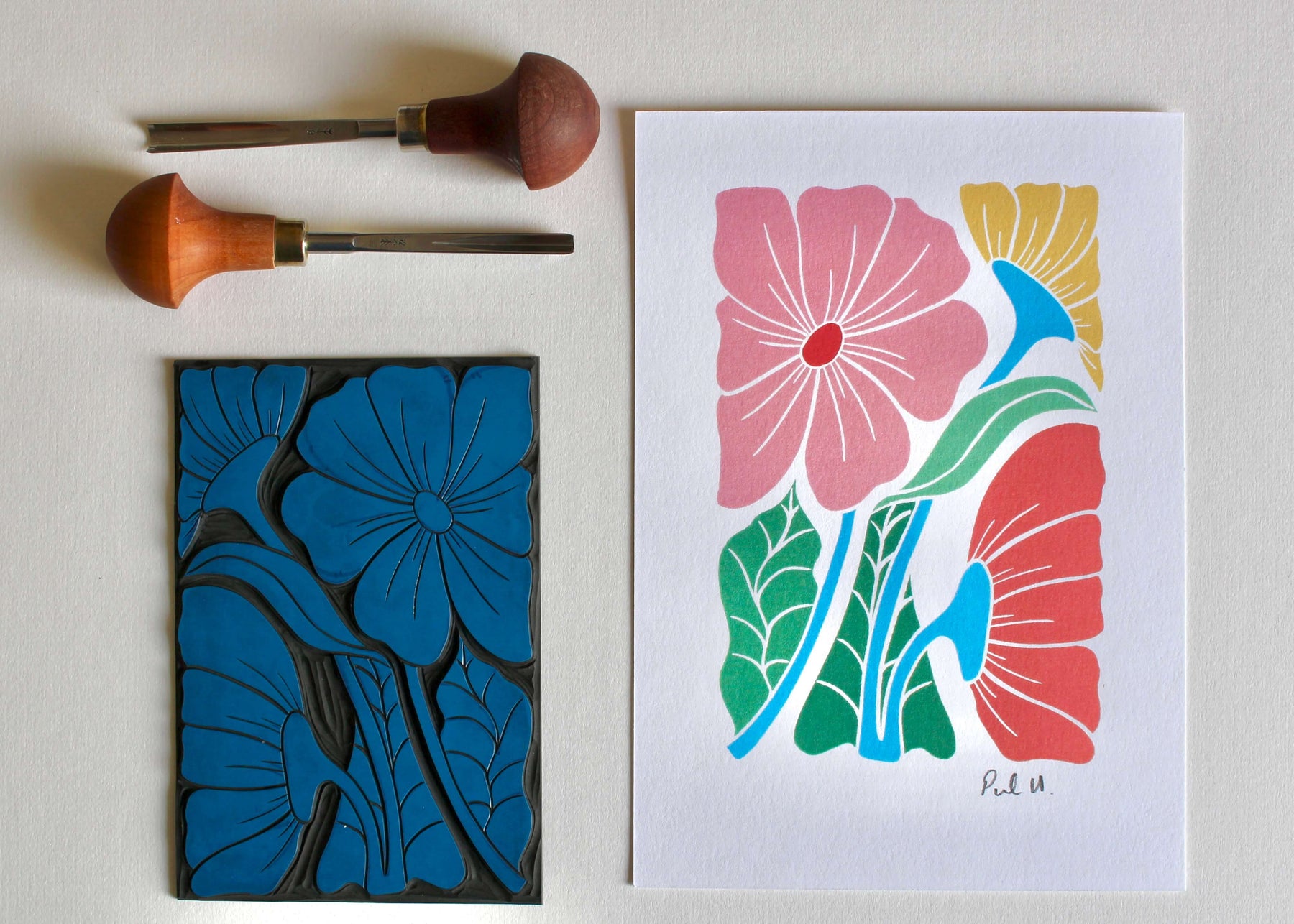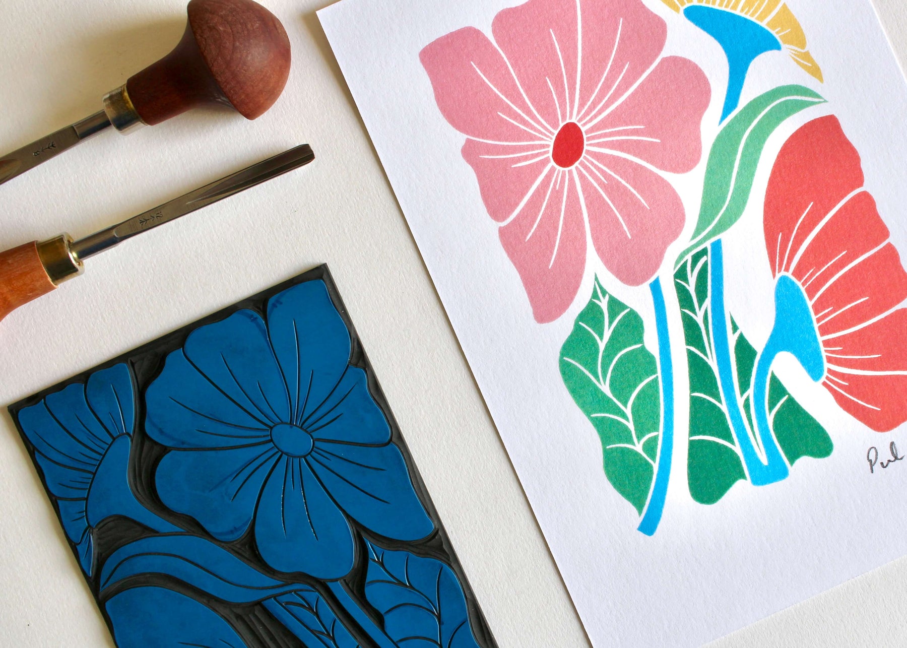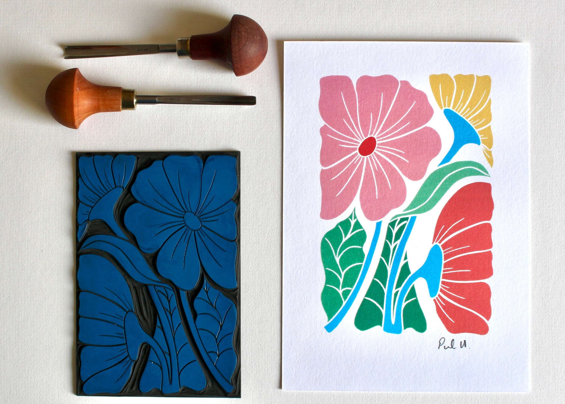 Bold & Beautiful Floral Linocut Art Print | A5 or A4 Art Print
