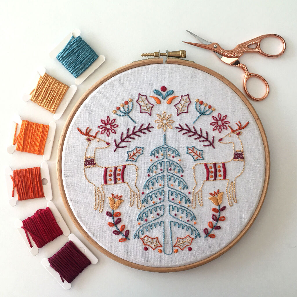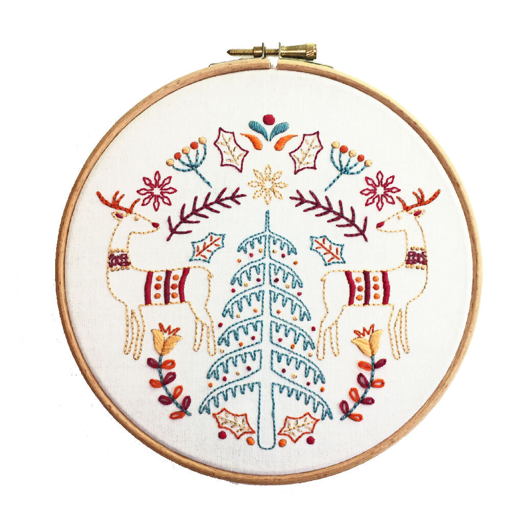 Featuring some fantastic contemporary colours blended with traditional Christmas motifs, this Embroidery Kit is suitable for all skill levels and contains everything you need to complete the design.