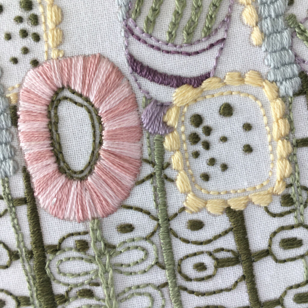 The lovely soft colours used in this design have been selected to create a peaceful feel to the embroidered work.