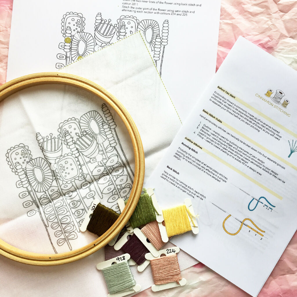 This beautiful floral embroidery kit from Cinnamon Stitching will leave you feeling 'springlike' whatever the weather is doing outside.
