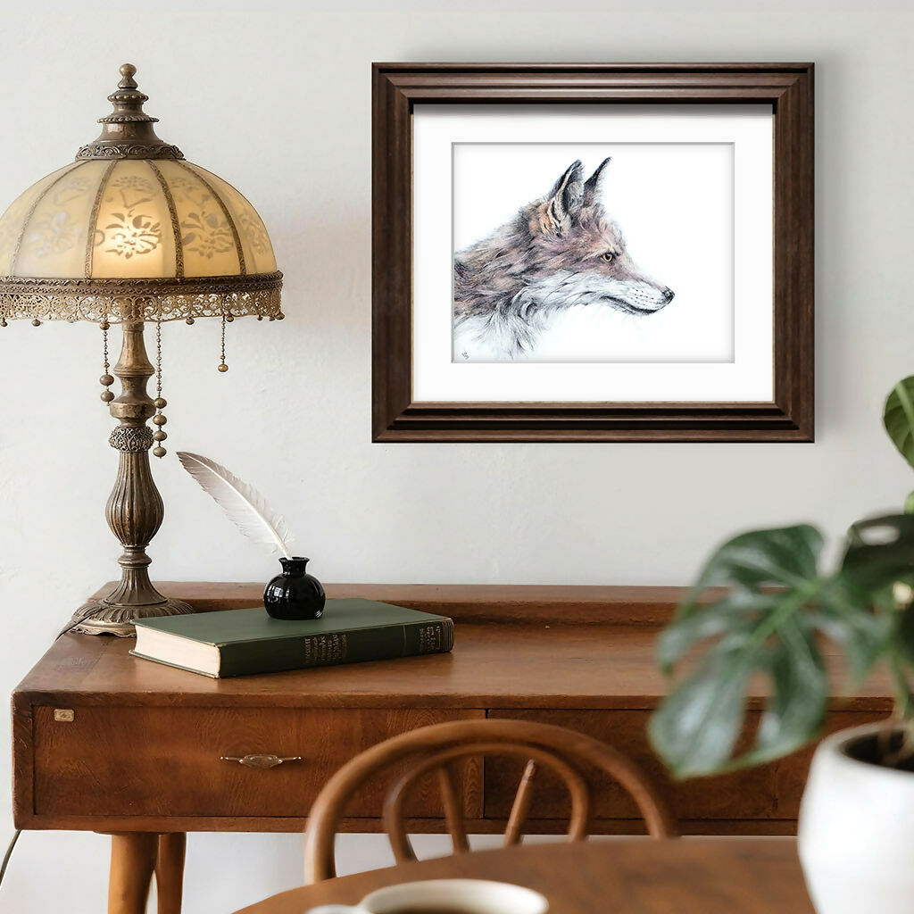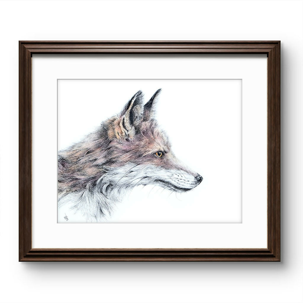 Bring a touch of the British countryside into your home with "Foxy", a beautifully detailed giclée print capturing the quiet determined look of this fox.