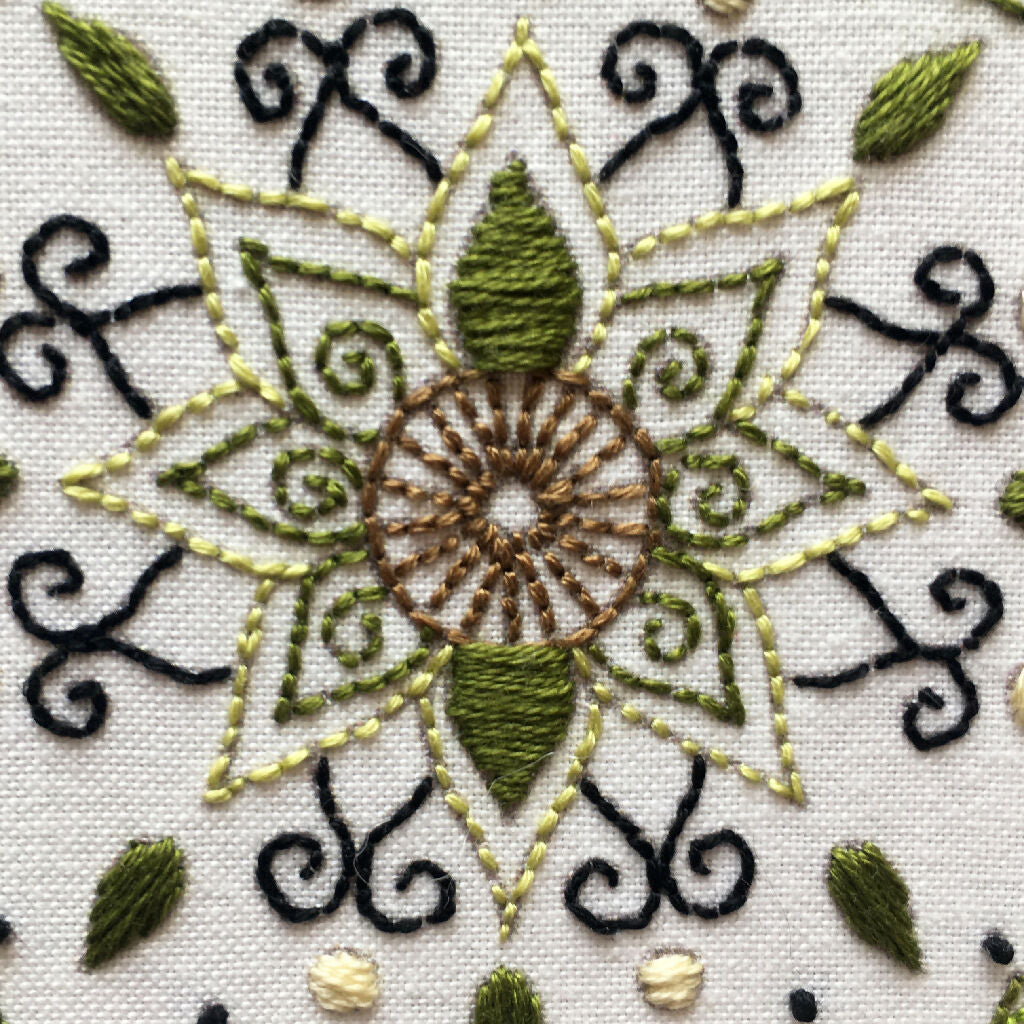Featuring shades of green, this gorgeous hand embroidery kit contains everything you need to complete this lovely design.