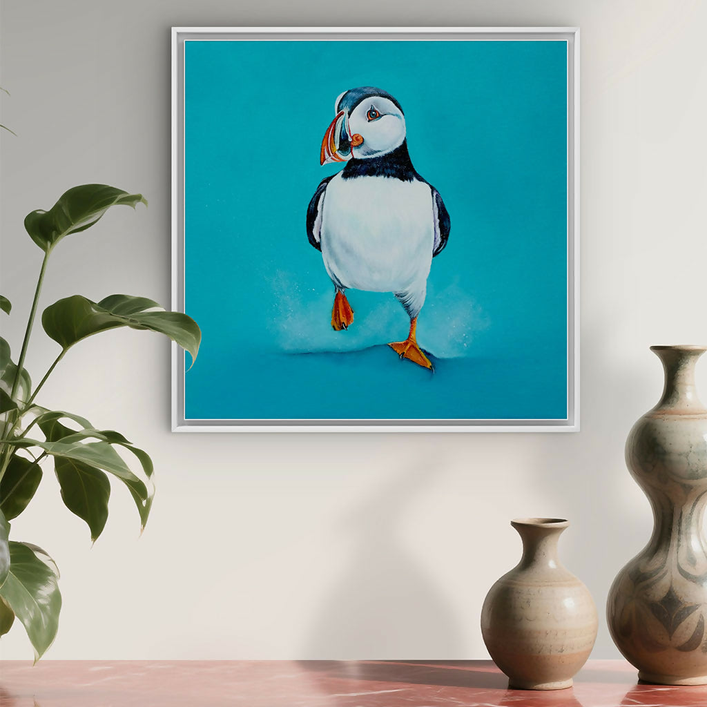 Bring the beauty of nature into your home and add a touch of coastal charm to your walls with this gorgeous original oil painting of a puffin.