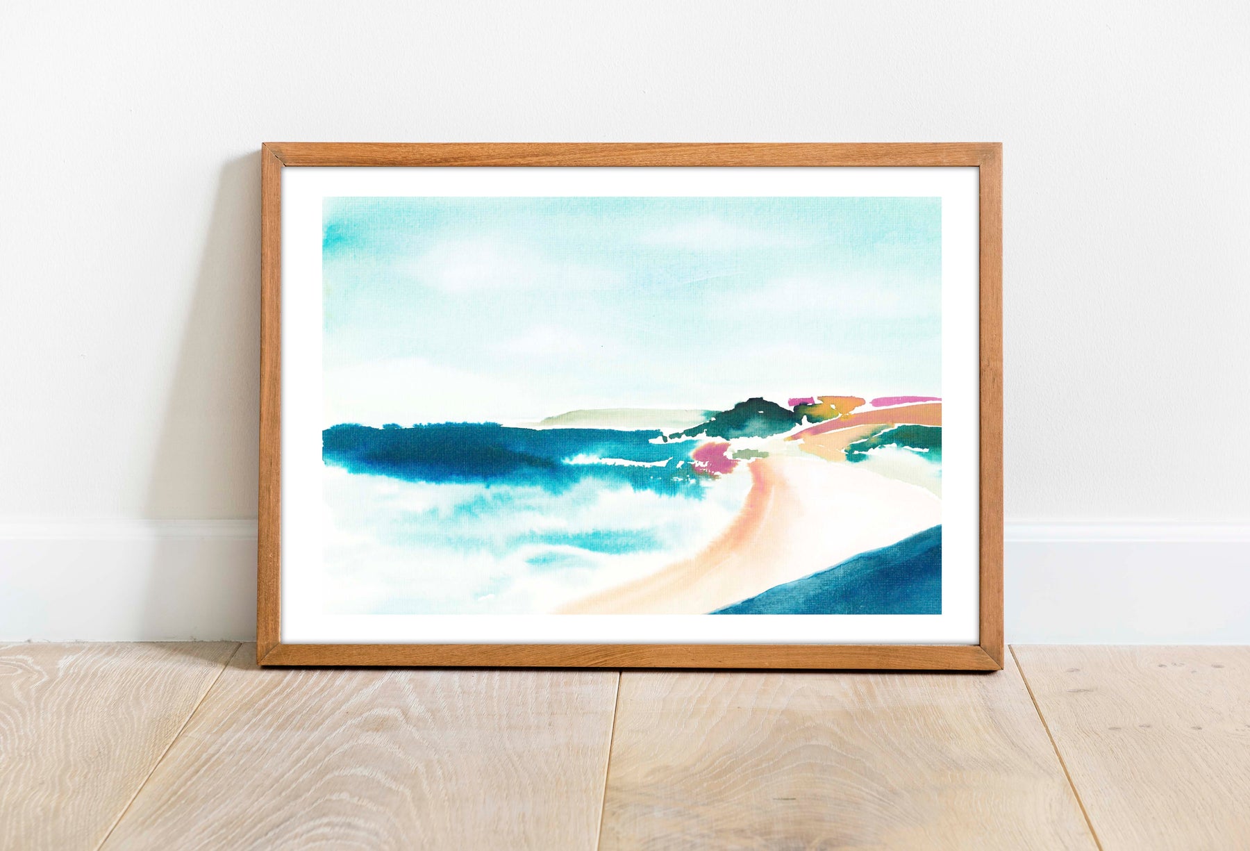 Originally painted in inks, this beautiful print of Gylly Beach, Falmouth has been captured by Kareni Lowes of Kelpi Studio.