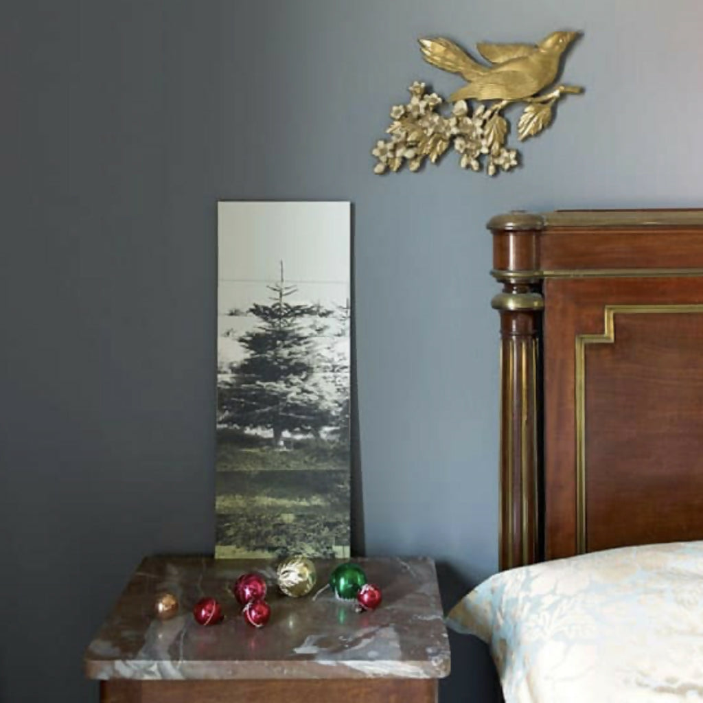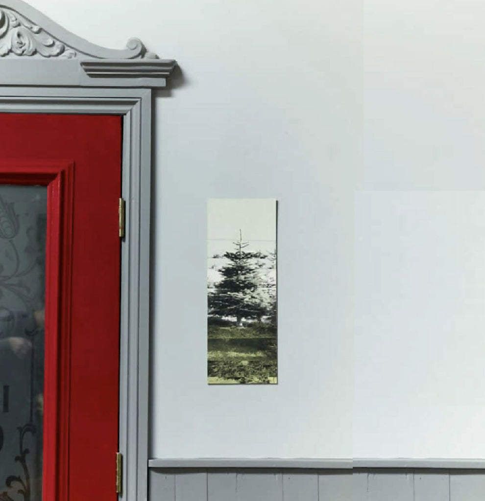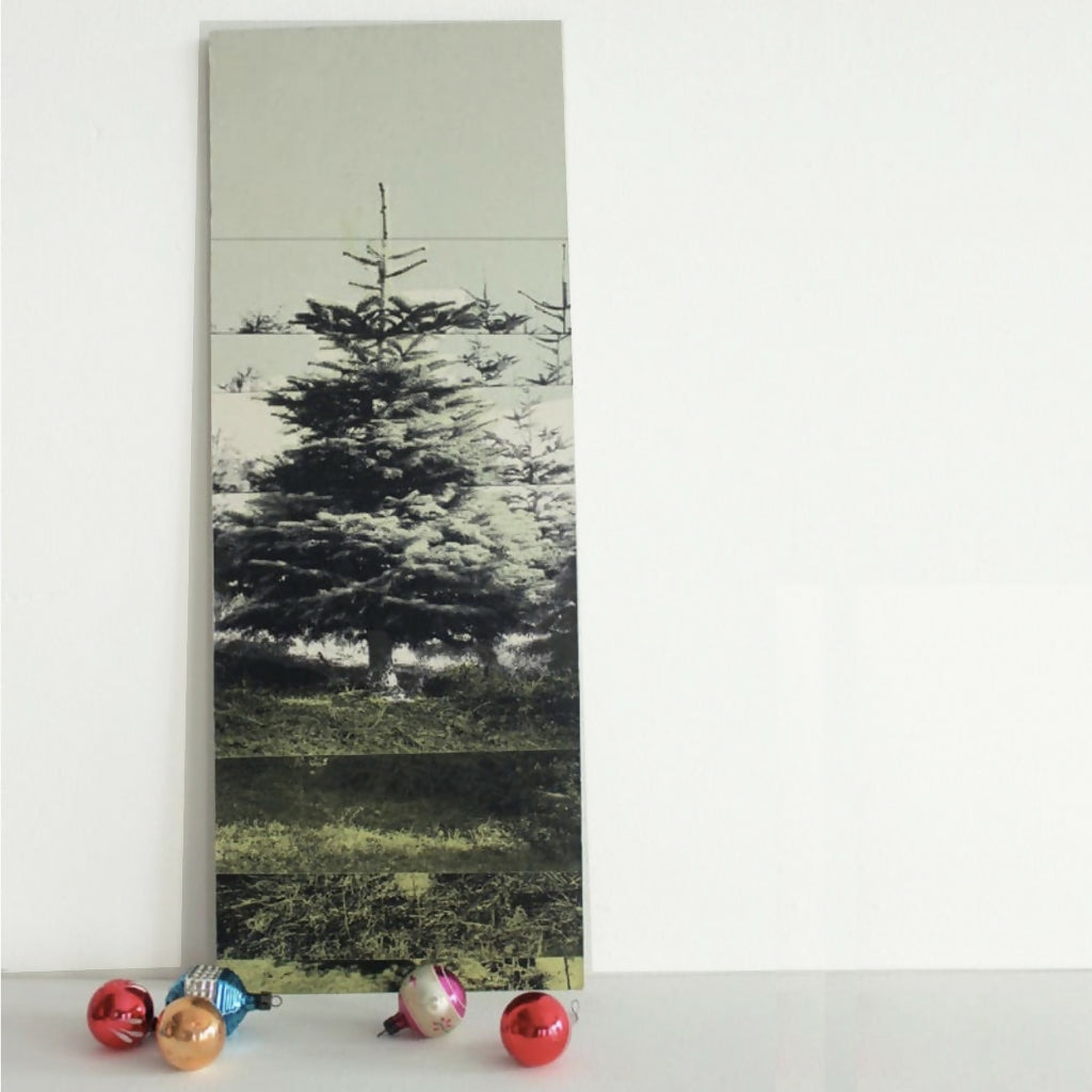 Information: Your miniature tree arrives mounted on grey board, ready to hang, with a space to write your own seasonal or personal message. Display it on a wall using a picture hook, screw, or nail, or simply place it on a shelf or lean it against a wall.