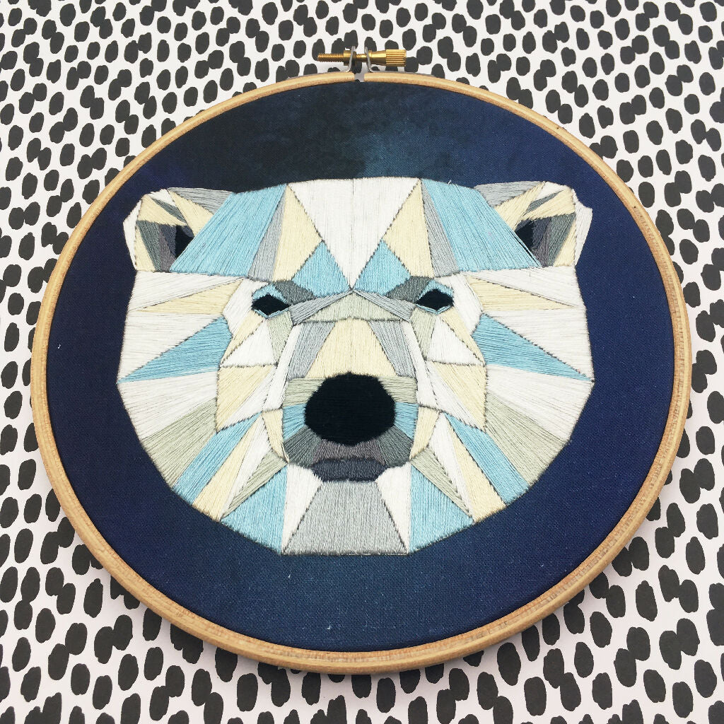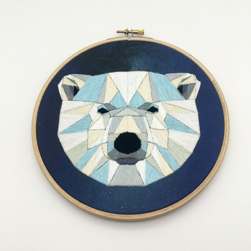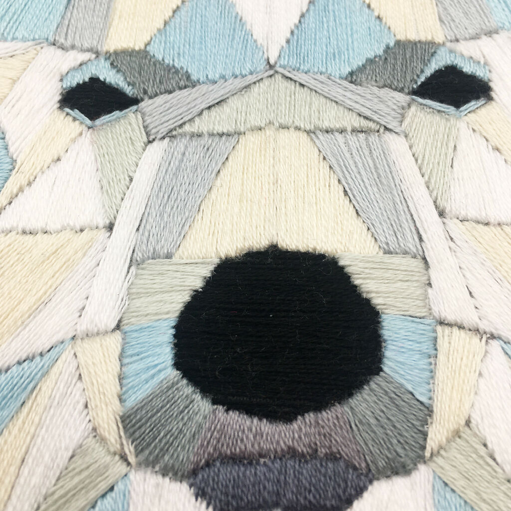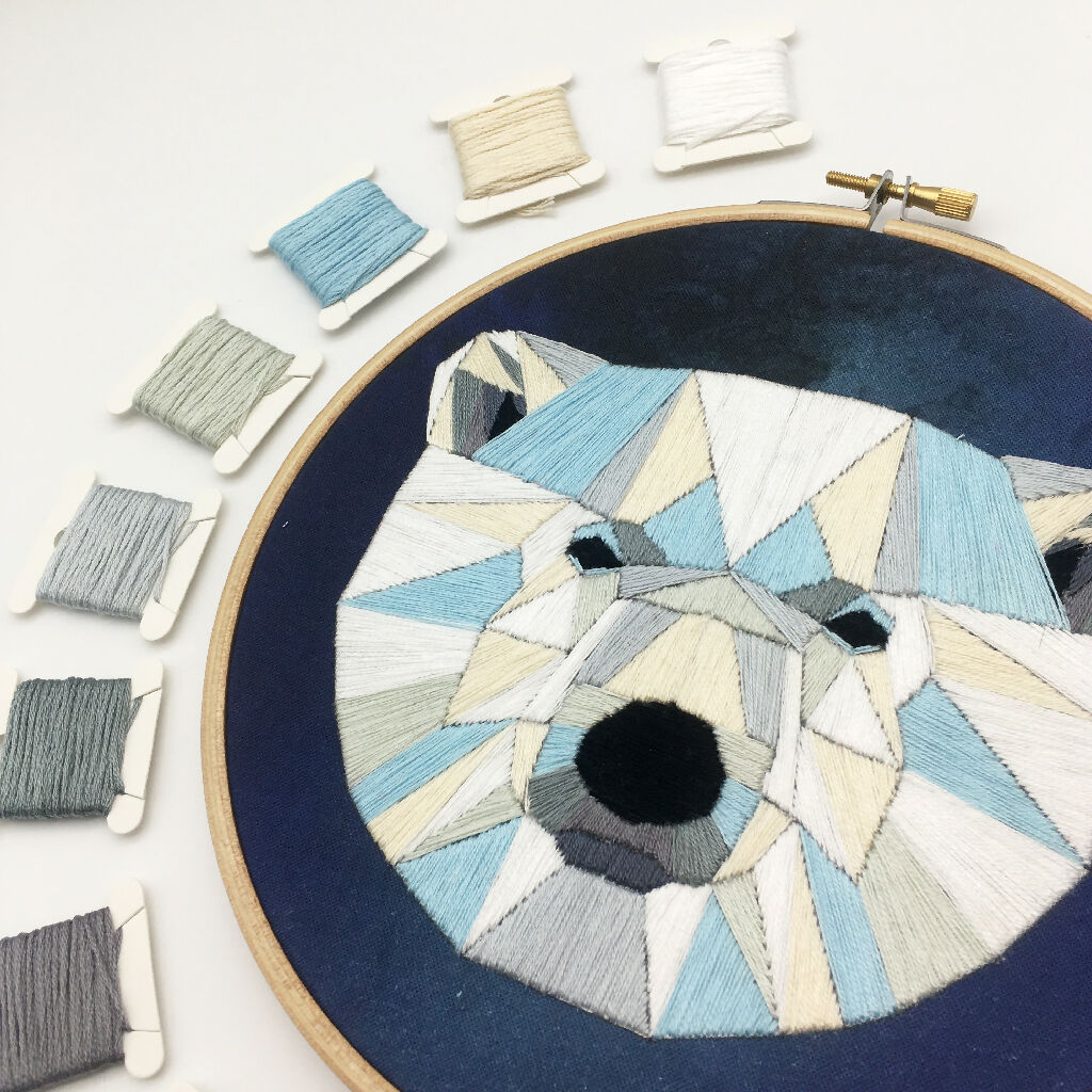 Stitch your own Polar Bear embroidery featuring the colours of an iceberg with this embroidery kit from Cinnamon Stitching