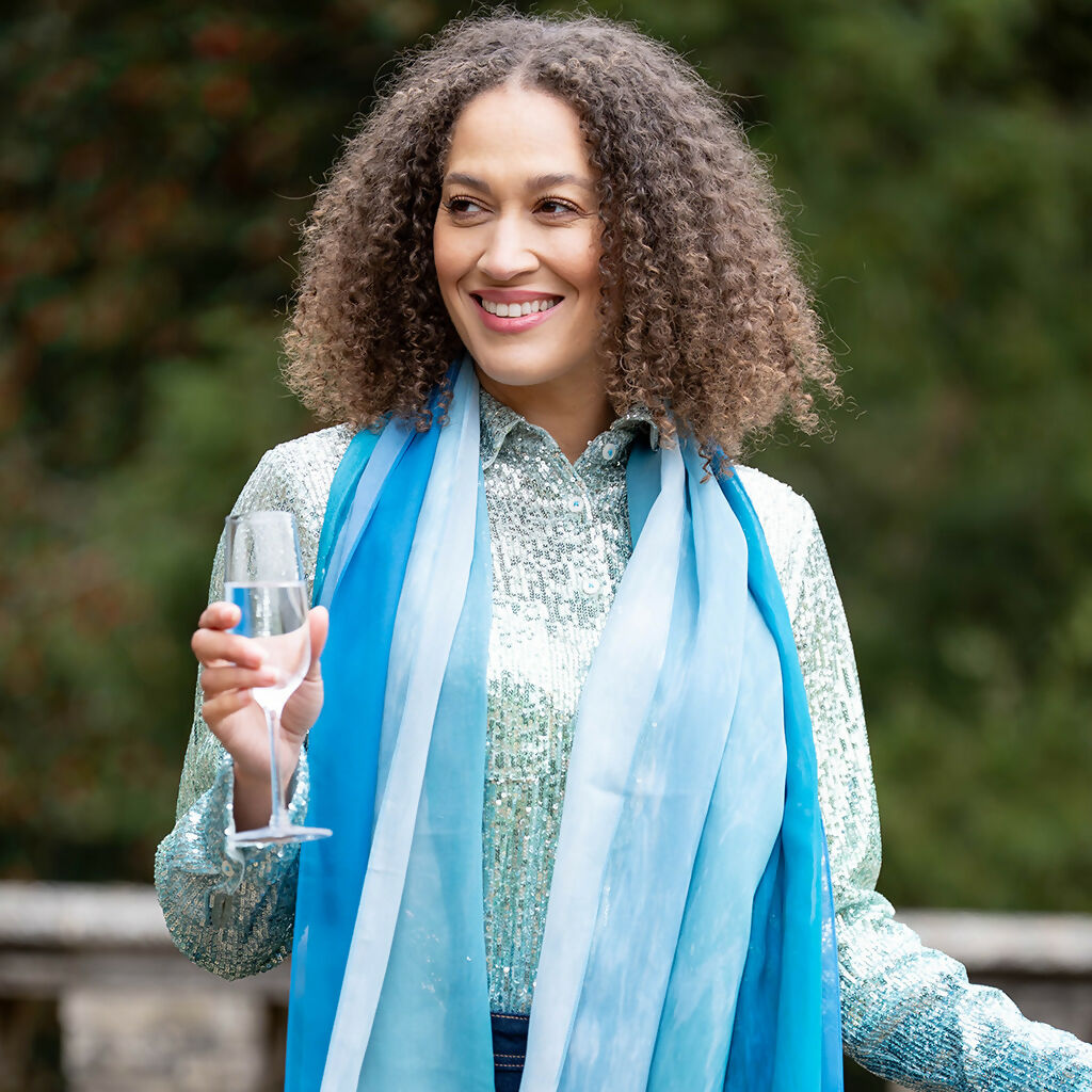 Inspired by the gentle aqua tones of the sea, this beautifully British-made silk scarf captures the calm and freshness of coastal living. Crafted from the finest silk in shades ...