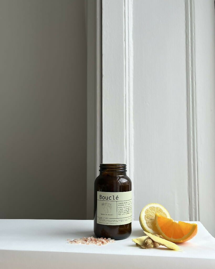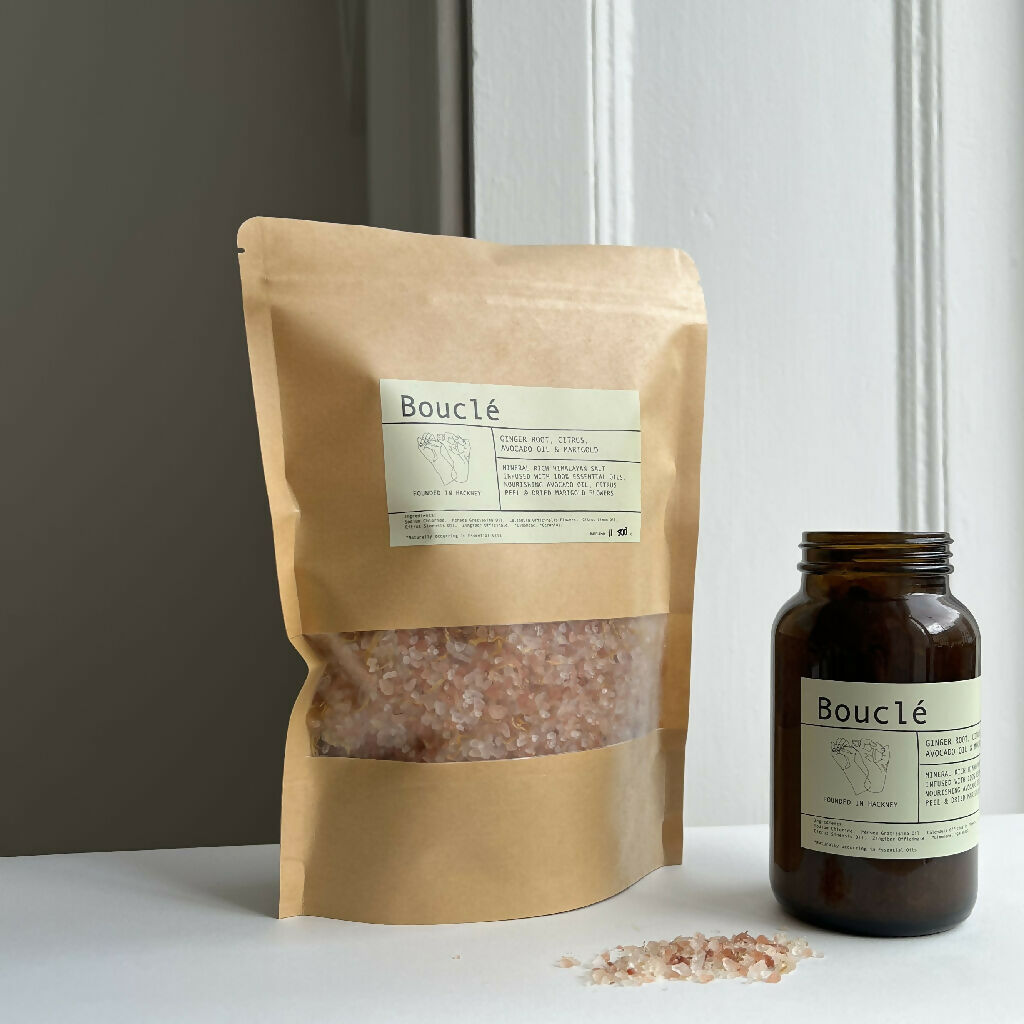 To enjoy the benefits, simply scatter a handful (approximately 50g) of Bouclé salts into your bath and allow yourself to unwind, letting go of the day's stresses.