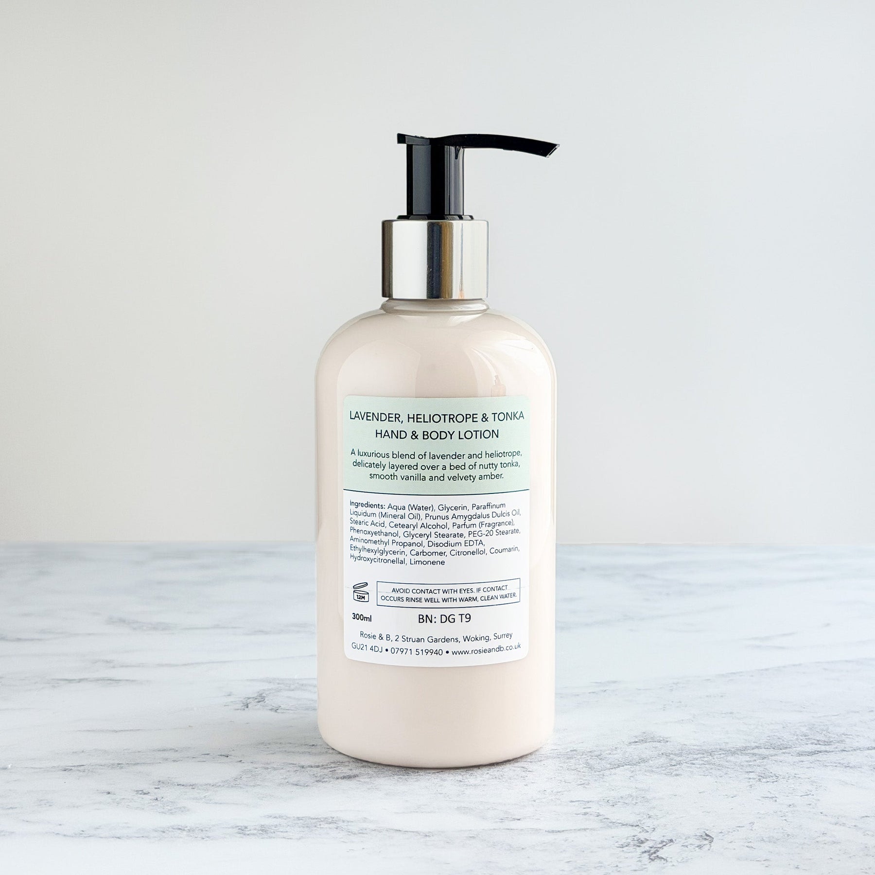 Rosie & B’s luxury Hand & Body Lotion moisturises beautifully, and leaves your skin feeling soft and smooth while you indulge in its gorgeous fragrance.
