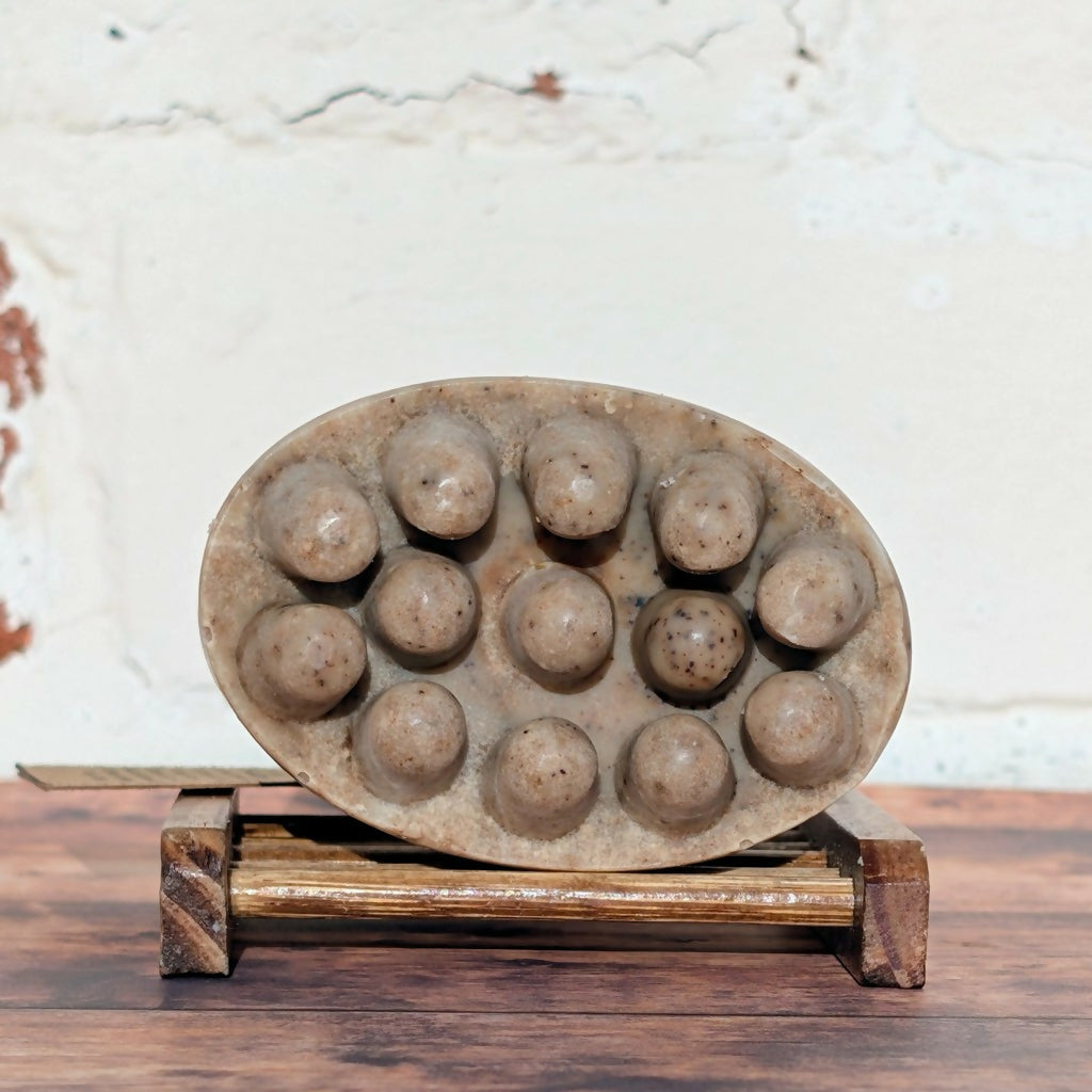 Wake up your skin with this energising scrub bar, crafted with locally sourced, upcycled coffee grounds to naturally exfoliate and buff away dryness. Infused with sweet orange essential oil, it leaves your skin feeling smooth, refreshed, and lightly scented with a warm citrus aroma.
