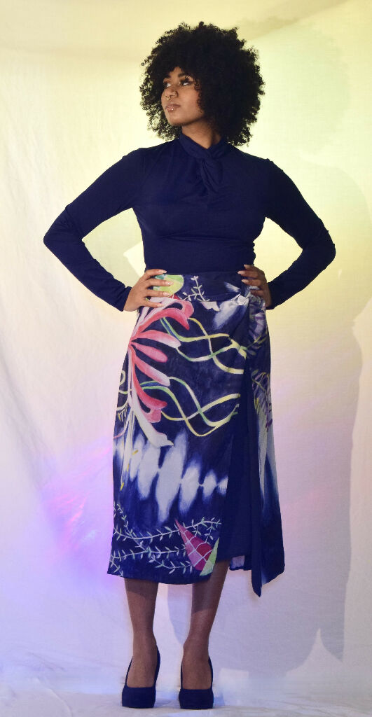 The Chiffon is printed in our African Print watercolour and has a crepe lining.
