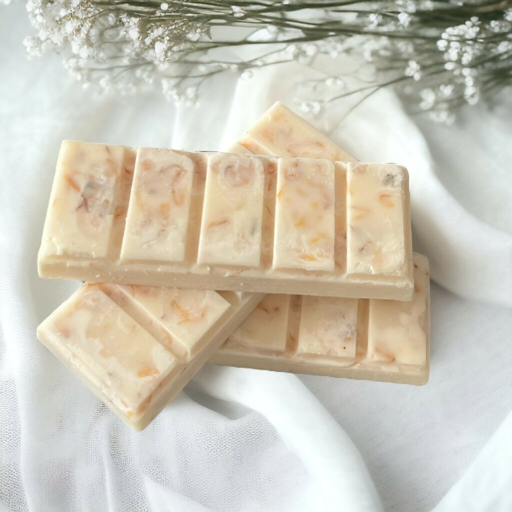 A hand-poured soy wax snap bar fragranced with a soothing essential oil blend, ideal for filling the home with a relaxing aroma.