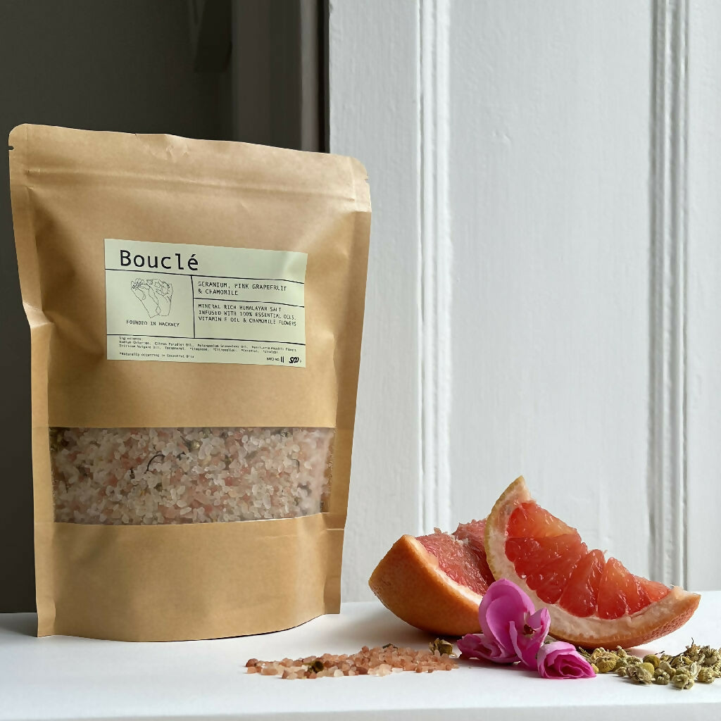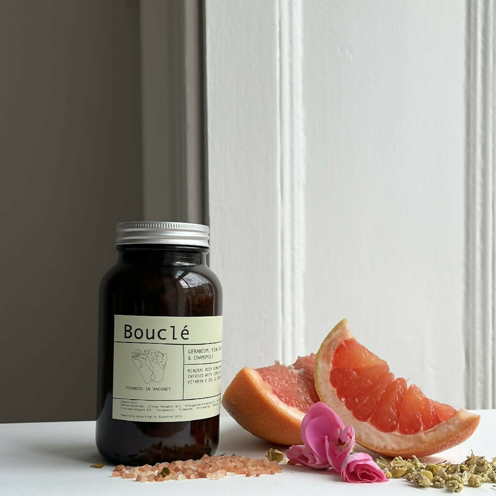 To enjoy the benefits, simply scatter a handful (approximately 50g) of Bouclé salts into your bath and allow yourself to unwind, letting go of the day's stresses.