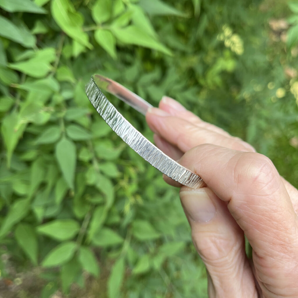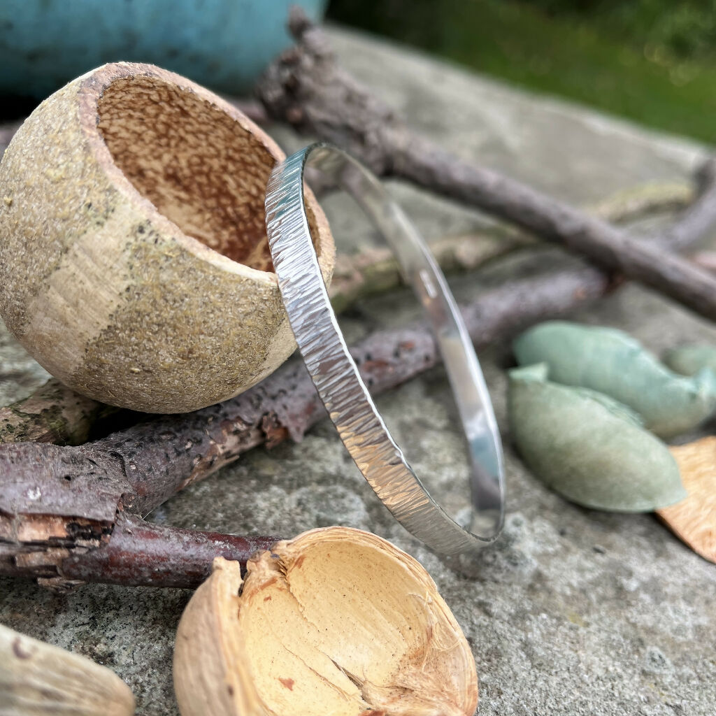 I make this lovely bangle from scratch, using recycled solid 925 sterling silver wire. I texture the wire and then hand forge it - all done with love in my West Yorkshire workshop in the UK.