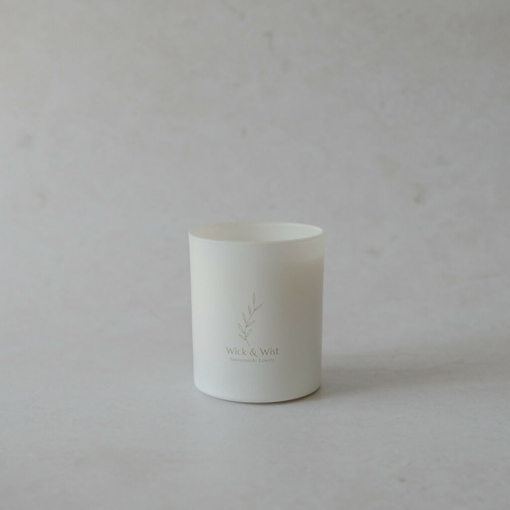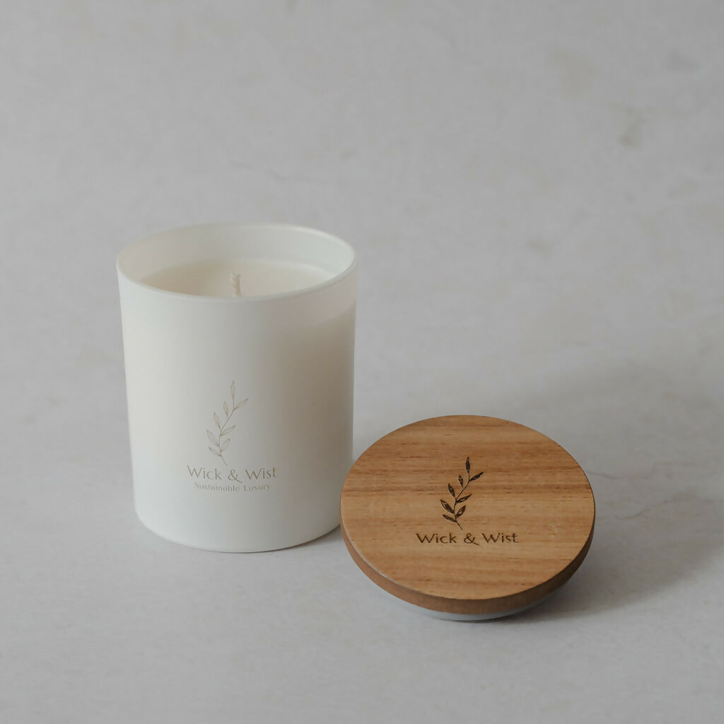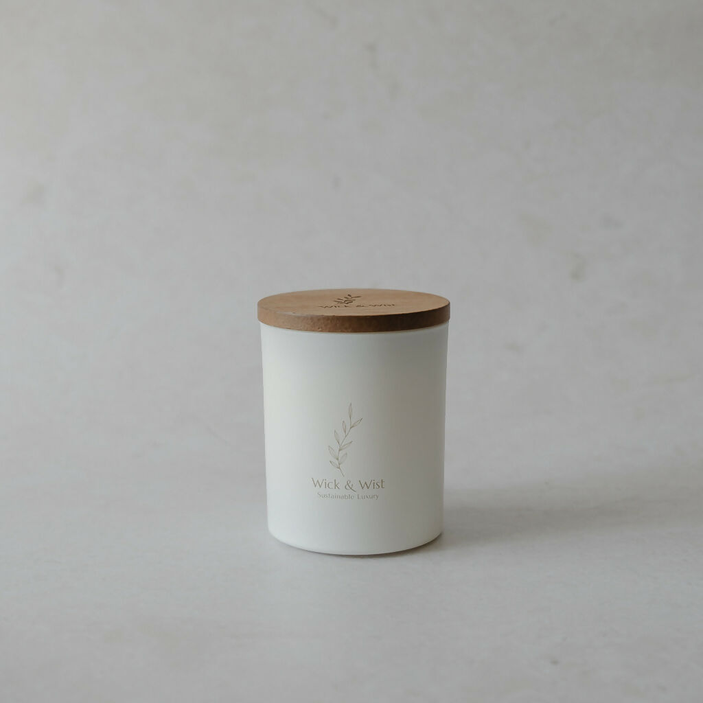 Handmade in small batches with 100% natural and sustainable rapeseed & coconut wax, this luxury candle has a clean and even burn time of approximately 45 hours. Beautifully presented in a timeless matt white etched glass with an etched wooden lid.