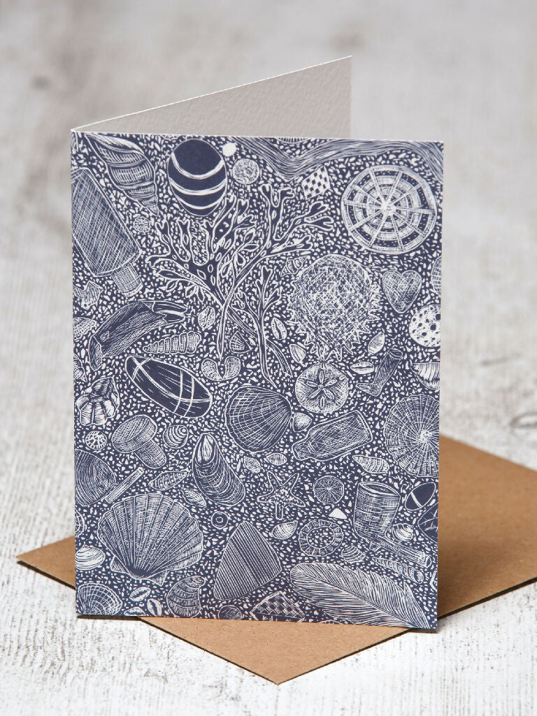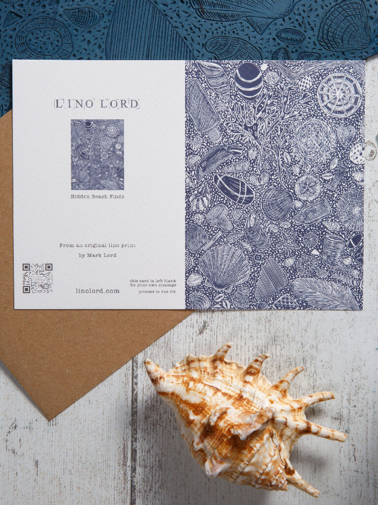 Hidden Beach Finds, A6 Lino Print Greeting Card