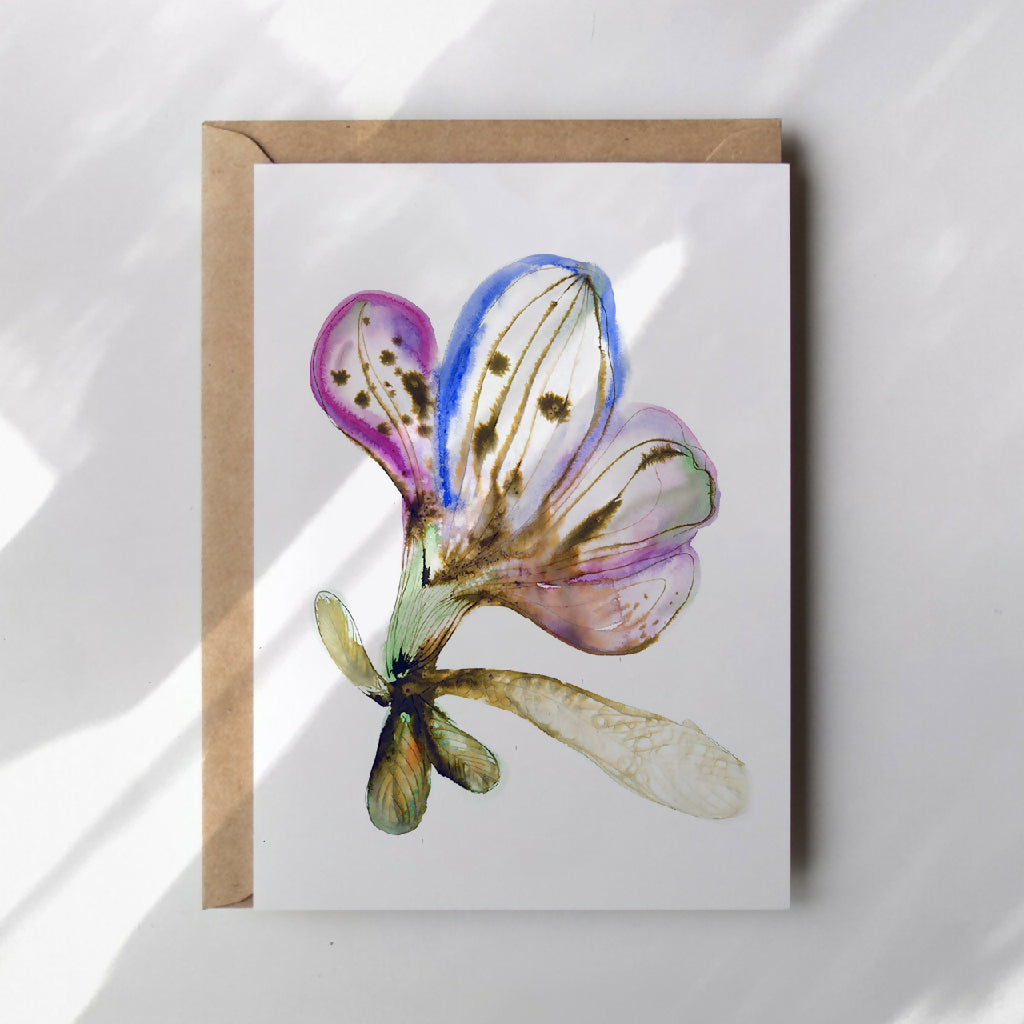 - A6 Purple Flower Ink & Watercolour Card - Blank Inside