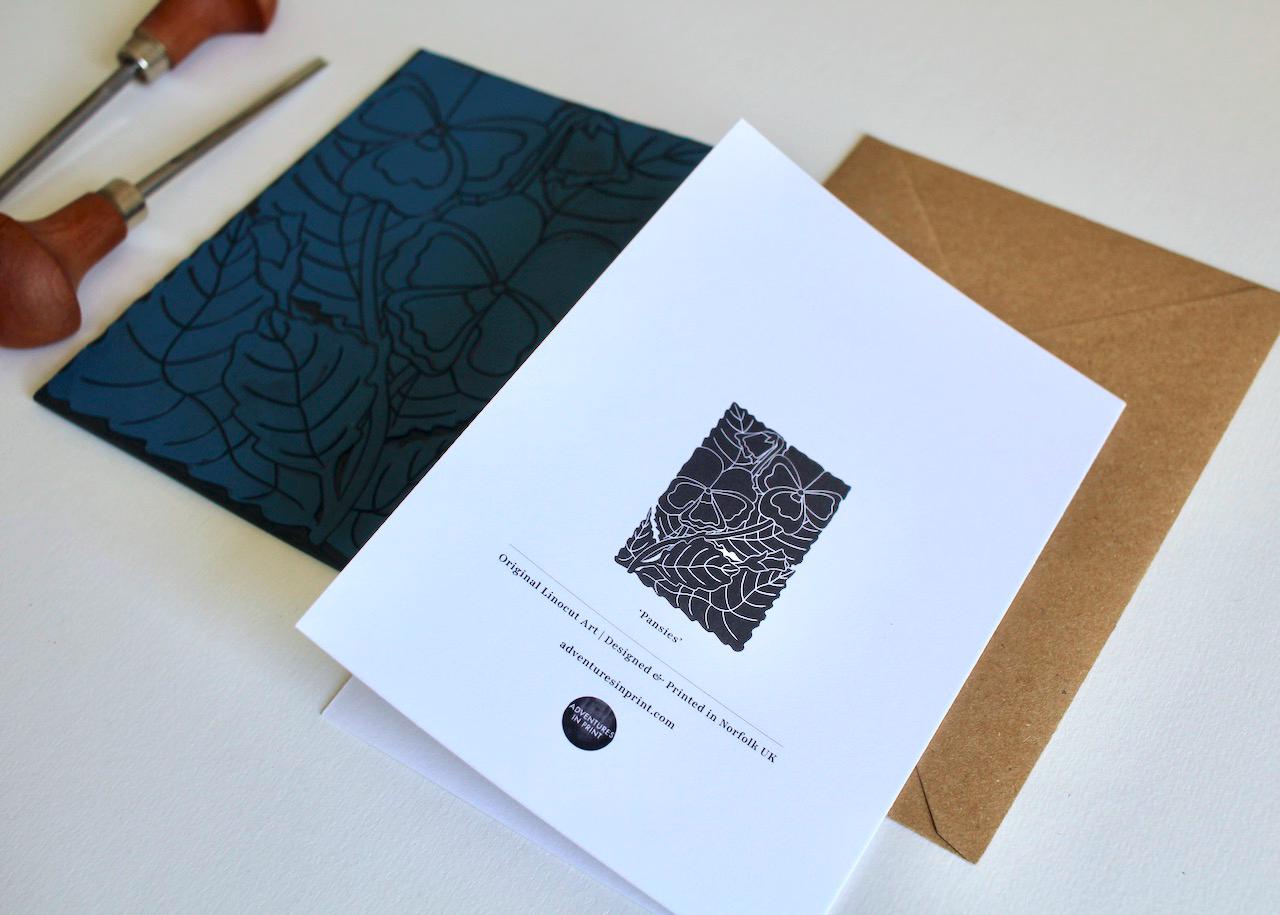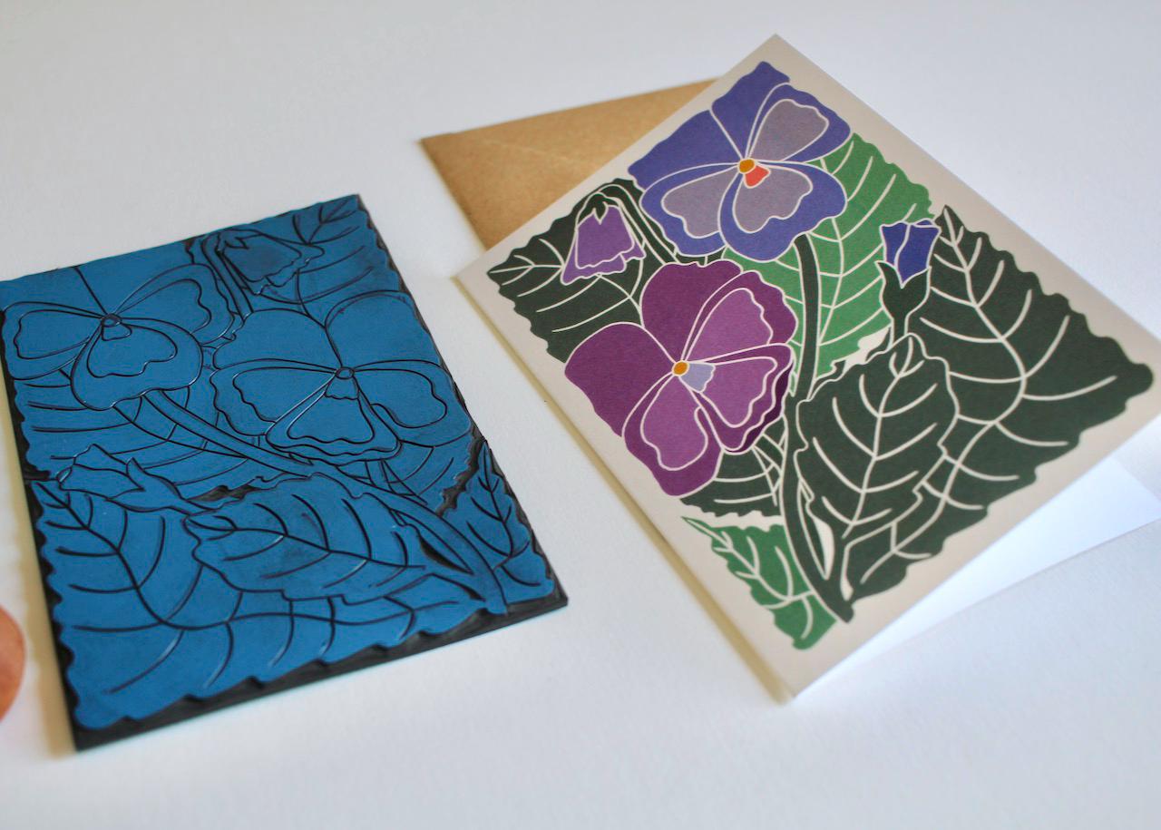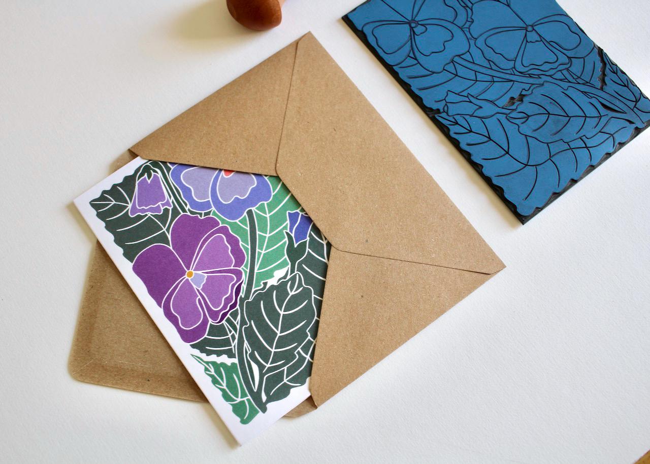 Pansies Linocut Greeting Card | Single Card & Envelope