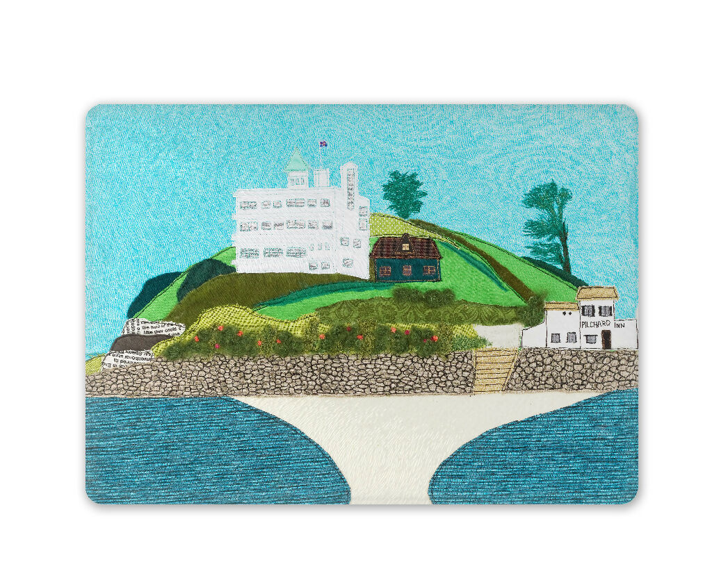 A beautifully designed textured glass chopping board, featuring a charming textile illustration of Burgh Island in Devon. Designed by Jackie Gale. Measures 39 x 28 cms. As well...