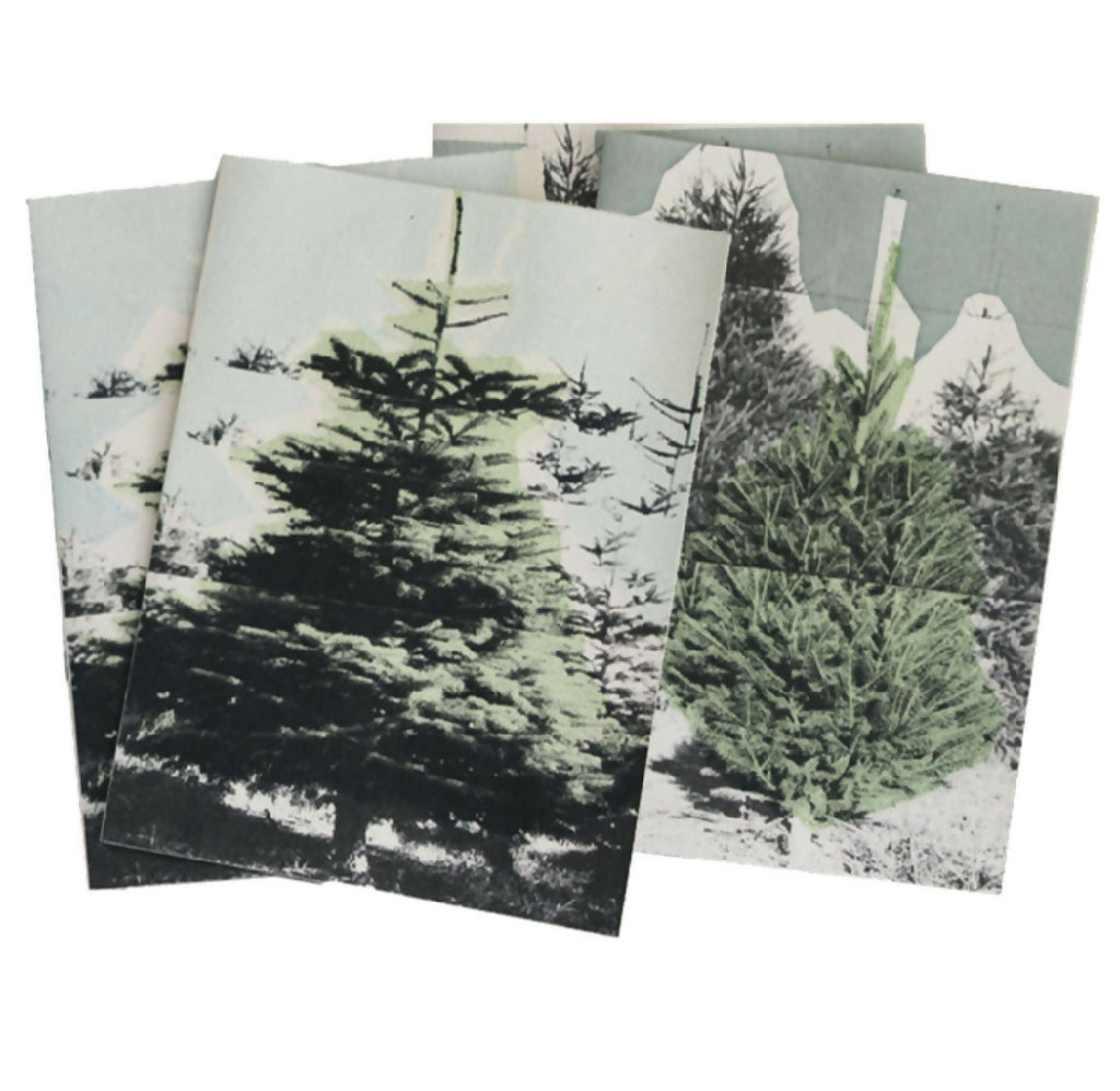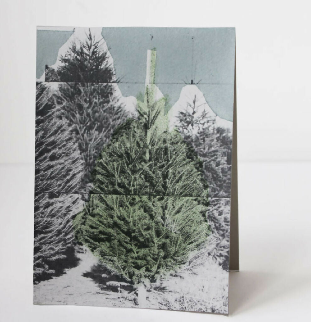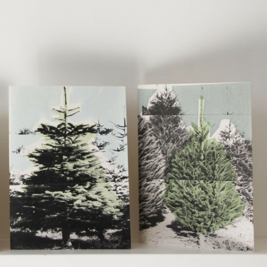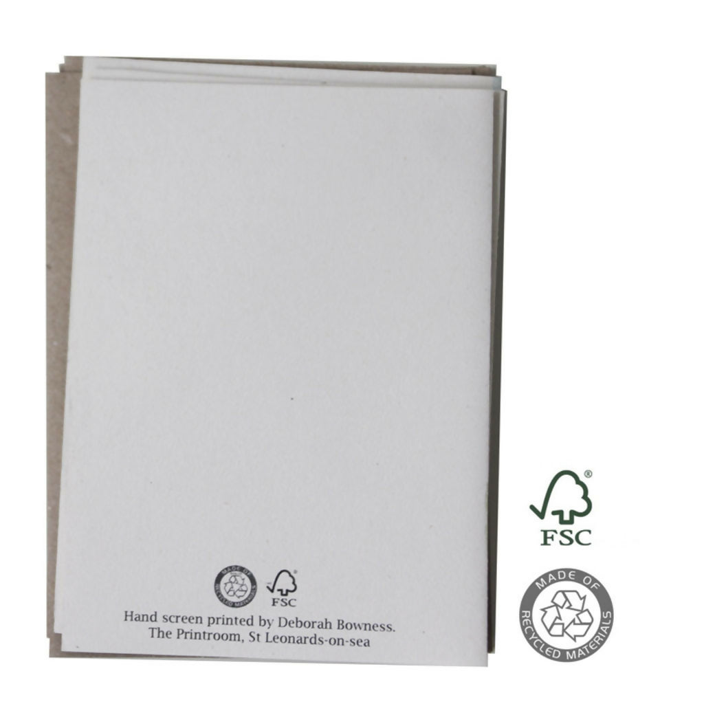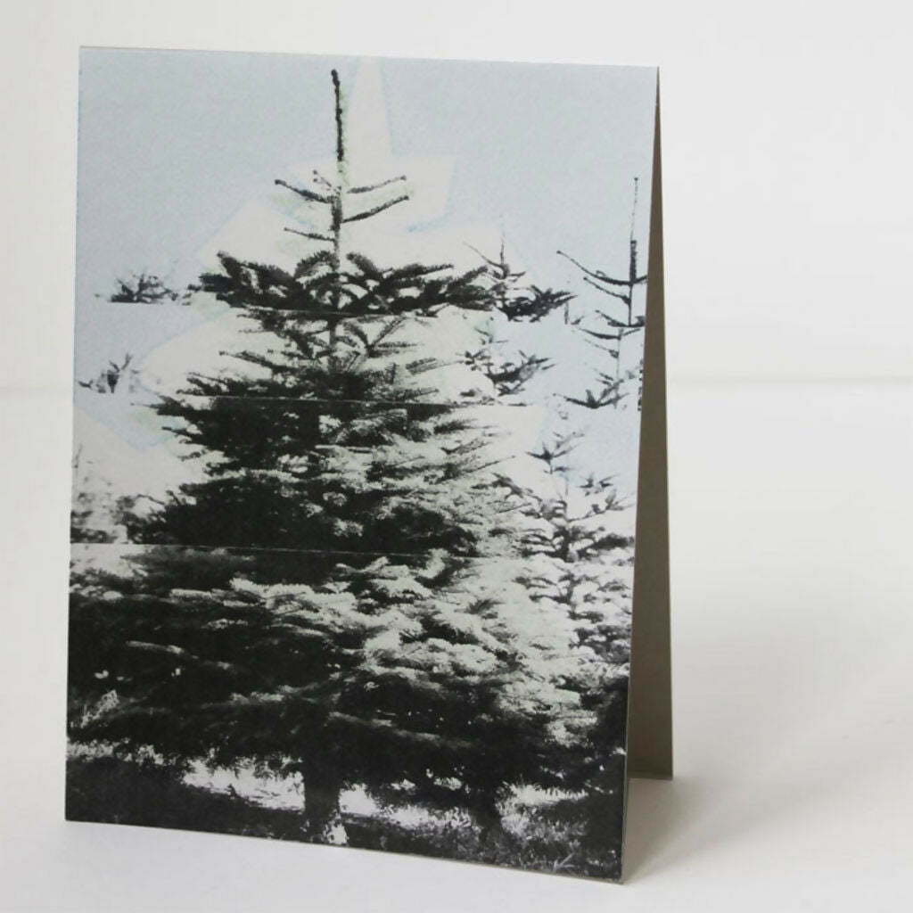 These unique handmade cards feature real Christmas trees growing on an East Sussex Christmas tree farm. Each card is hand-printed on FSC-certified wallpaper and comes with a recycled paper envelope. There are two designs to choose from.